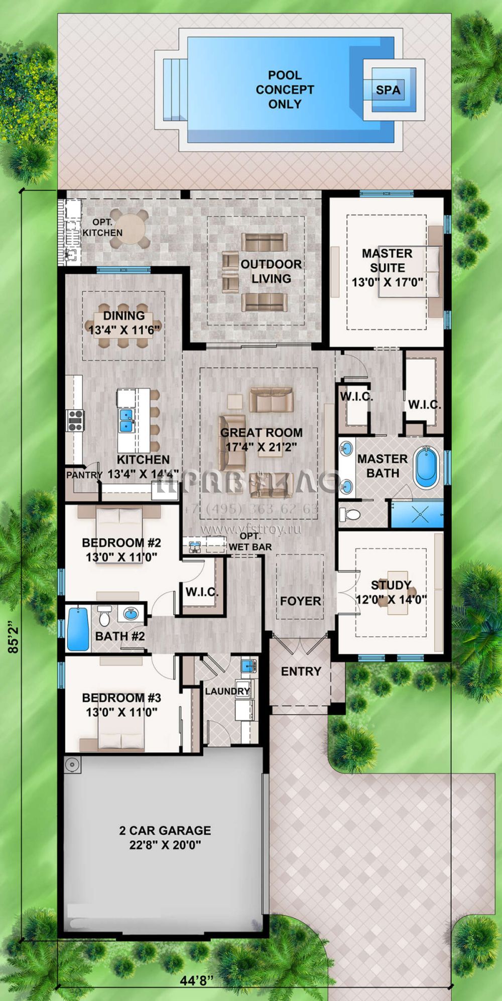 Поскольку этот проект разрабатывался иностранными архитекторами, для строительства дома требуется переработка проекта под действующие в России нормы. Данные визуализации проекта представлены для ознакомления с концепцией проекта. Проект разработан американским архитектурным бюро и представлен America's Best House Plans.