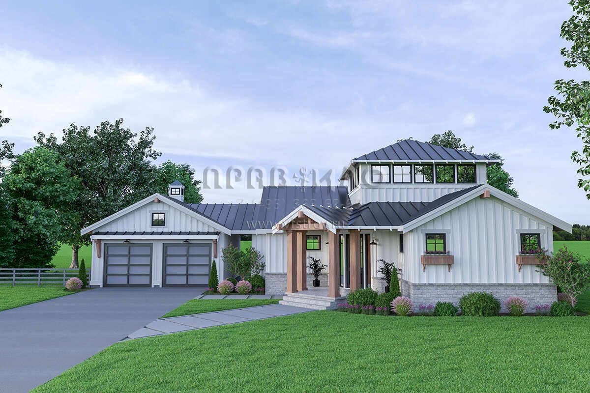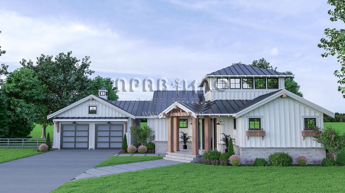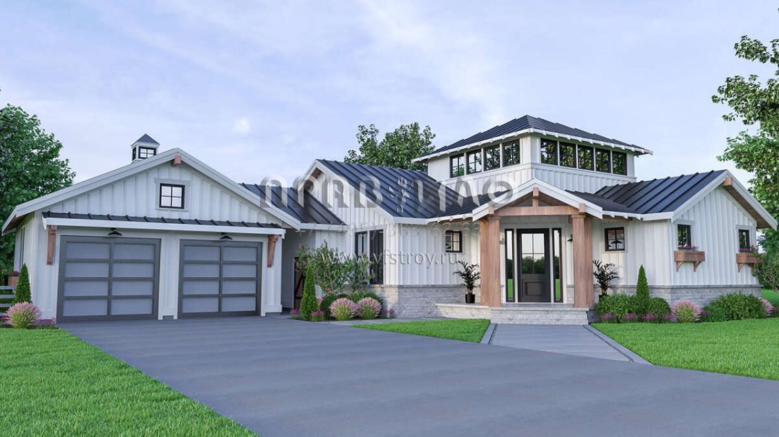 Проект двухэтажного дома с гаражом на две машины в современном стиле S5-207 (2464-00047)