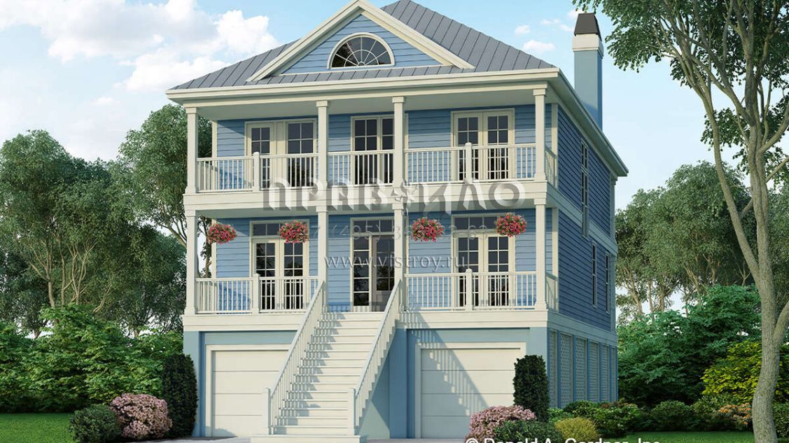 Проект двухэтажного дома с гаражом на две машины в прибрежном стиле S5-207 (2865-00227)