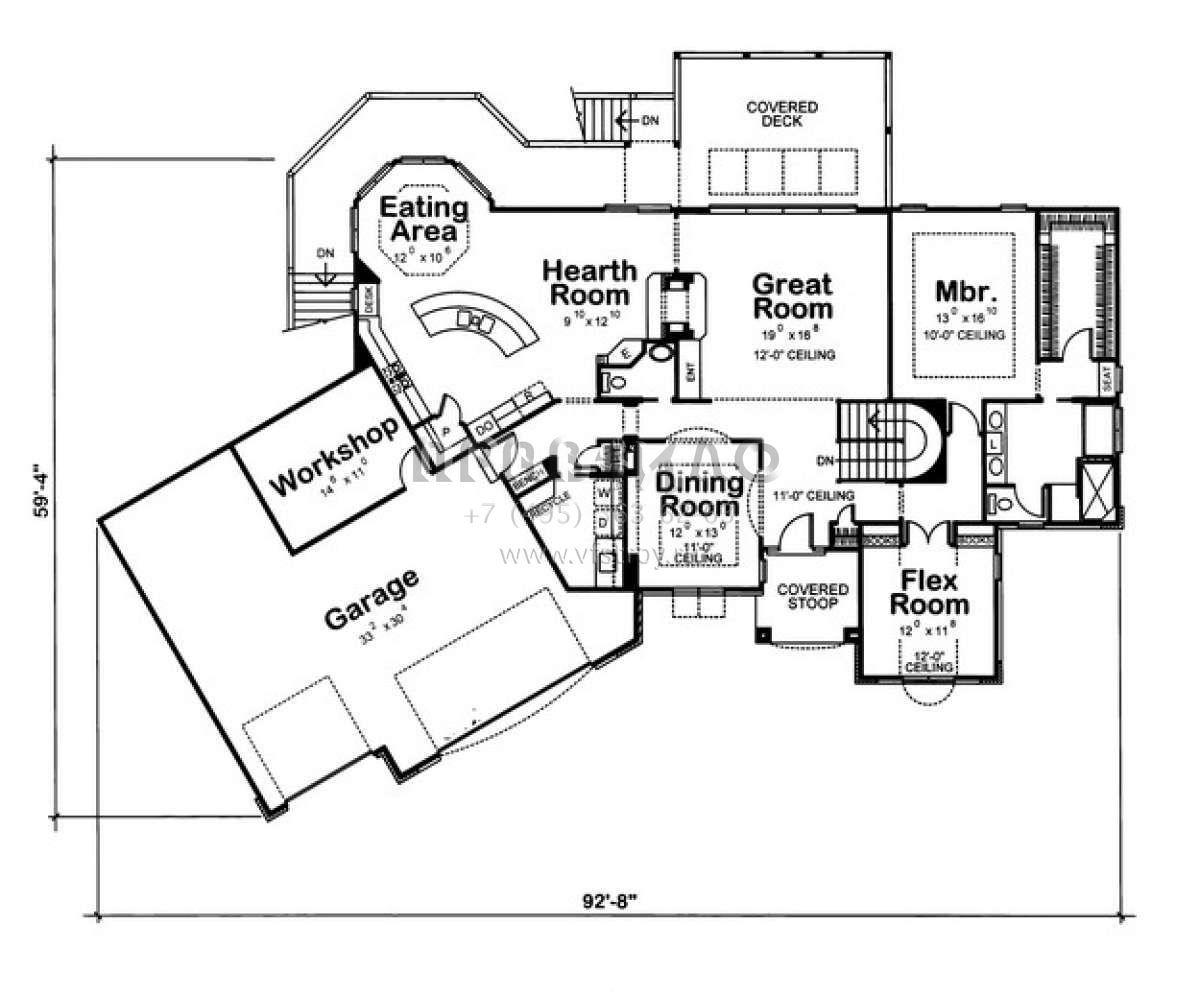 S5-207 (402-00644) Это иностранный проект, для которого требуется адаптация под нормы, действующие в Российской Федерации. Вы видите проект дома в английском стиле. В этом доме сочетаются черты сельской постройки и аскетичность лофта. Внутри жильцы смогут проводить время с максимальным комфортом. Обратим внимание, что сейчас на планировках все размеры представлены в футах. Для перевода в метры вам необходимо значение в футах умножить на 0,3048.