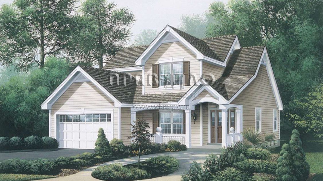 Проект двухэтажного дома с гаражом на две машины в стиле Ранчо S5-207 (5633-00101)