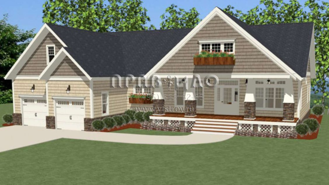 Проект одноэтажного дома с гаражом на две машины в американском стиле S5-207 (6849-00016)