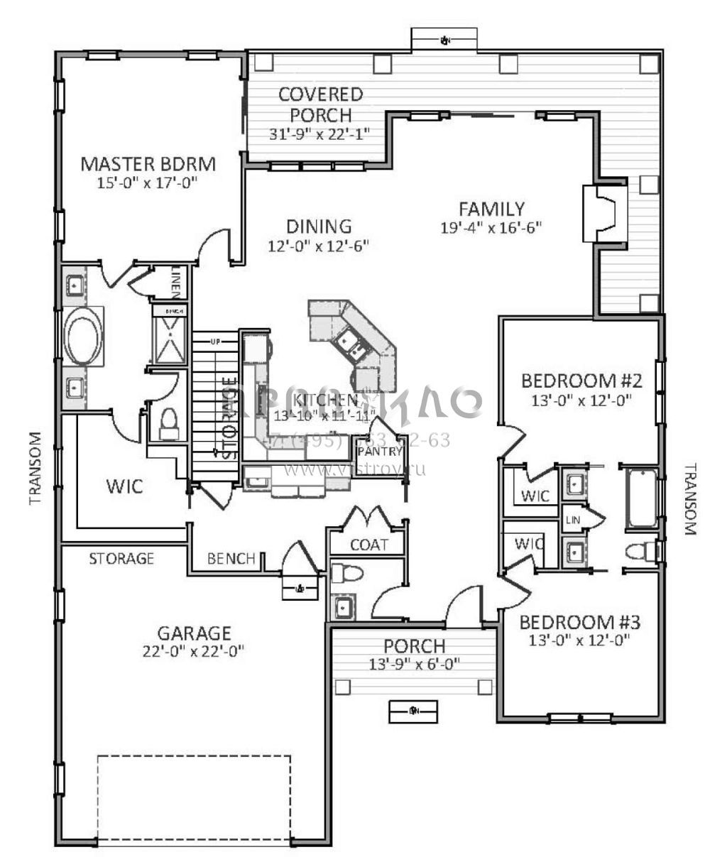 S5-207 (6849-00045) Это иностранный проект, для которого требуется адаптация под нормы, действующие в Российской Федерации. Вы видите проект дома в стиле Ранчо. В этом доме сочетаются черты сельской постройки и аскетичность лофта. Внутри жильцы смогут проводить время с максимальным комфортом. Обратим внимание, что сейчас на планировках все размеры представлены в футах. Для перевода в метры вам необходимо значение в футах умножить на 0,3048.