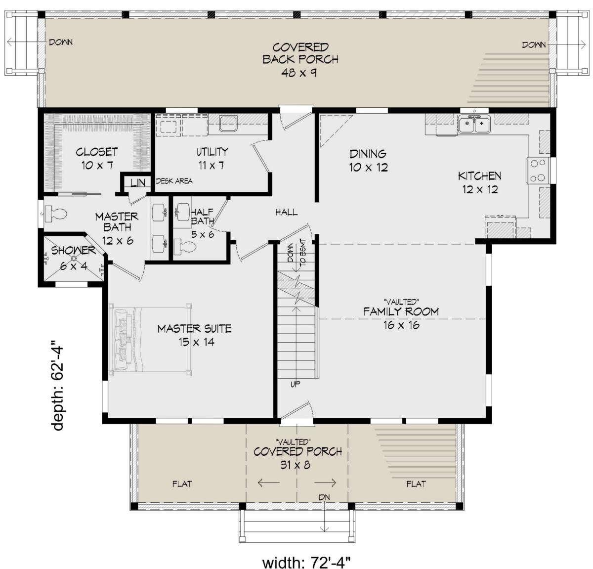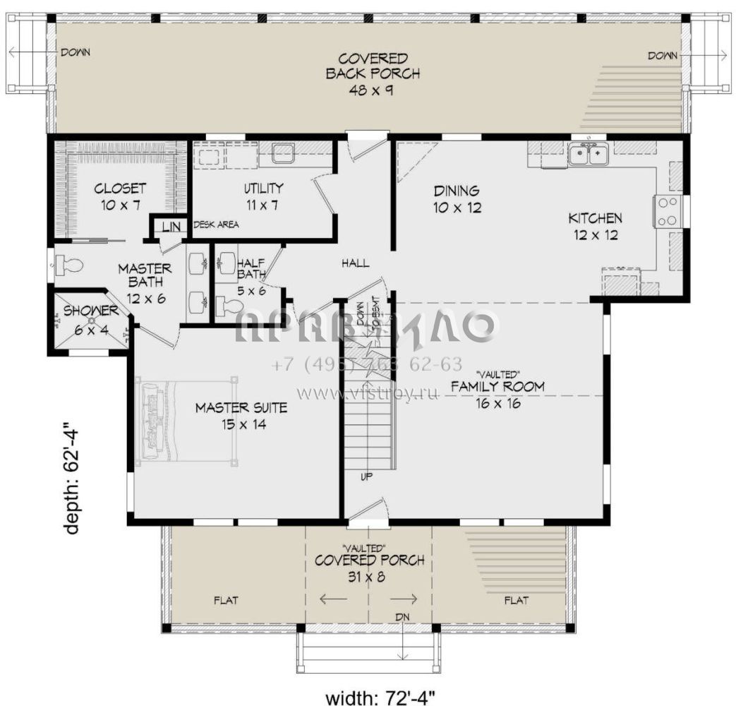 S5-207 (940-00240) Это иностранный проект, для которого требуется адаптация под нормы, действующие в Российской Федерации. Вы видите проект дома в стиле Ранчо. В этом доме сочетаются черты сельской постройки и аскетичность лофта. Внутри жильцы смогут проводить время с максимальным комфортом. Обратим внимание, что сейчас на планировках все размеры представлены в футах. Для перевода в метры вам необходимо значение в футах умножить на 0,3048.