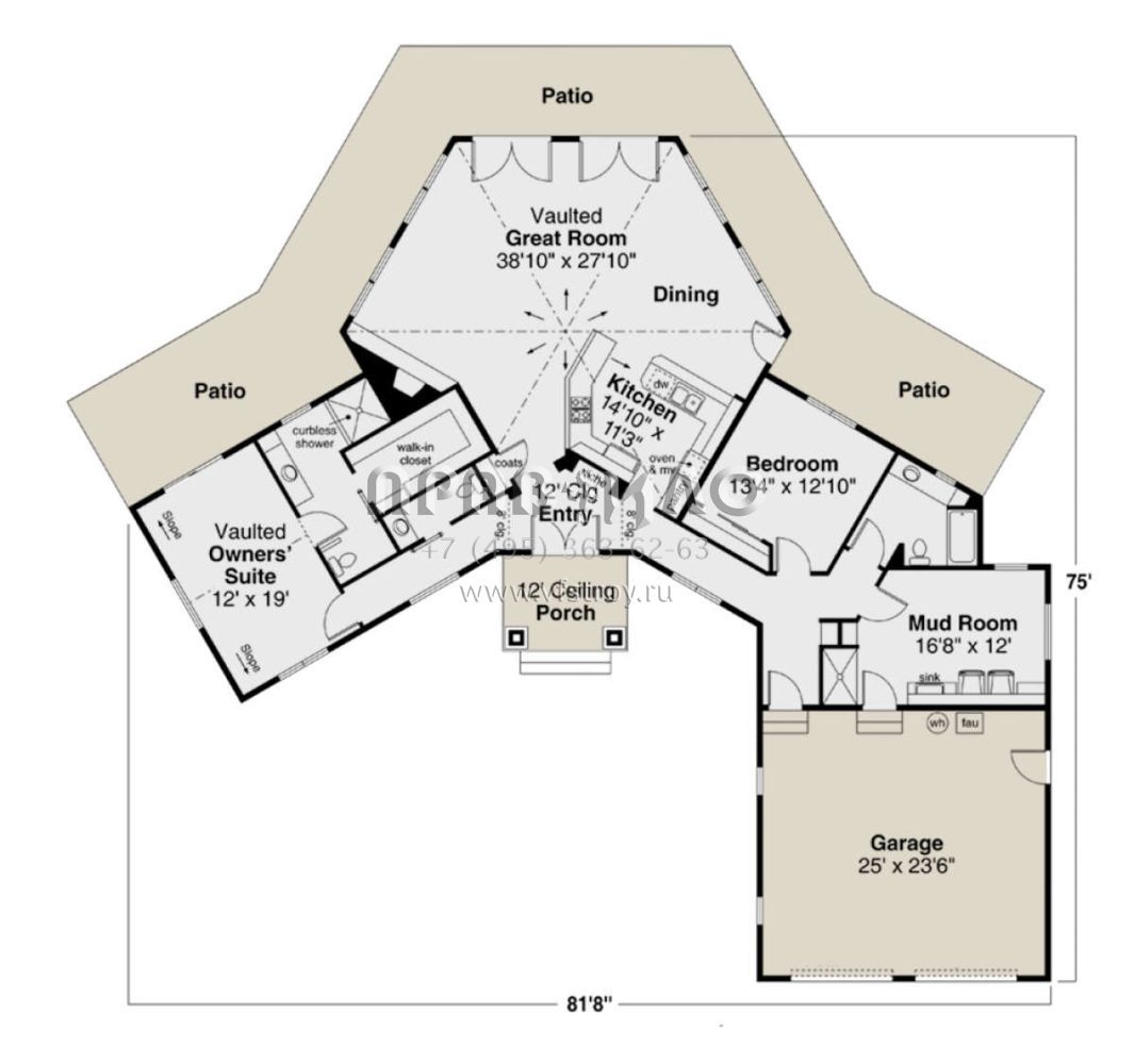 Поскольку этот проект разрабатывался иностранными архитекторами, для строительства дома требуется переработка проекта под действующие в России нормы. Данные визуализации проекта представлены для ознакомления с концепцией проекта. Проект разработан американским архитектурным бюро и представлен America's Best House Plans.