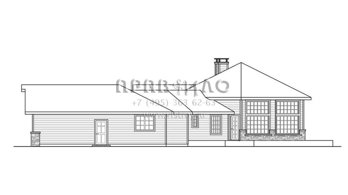 Большая площадь участка позволяет выбрать одноэтажный проект дома, особенно если в семье есть пожилые люди, инвалиды или маленькие дети.