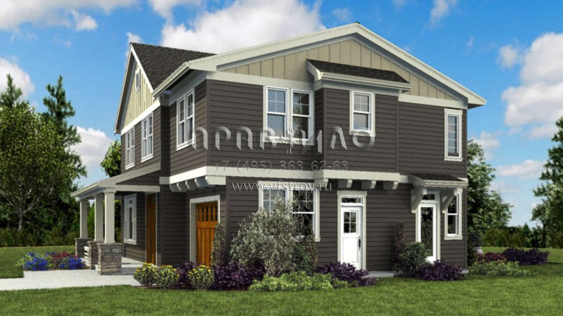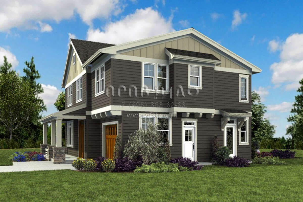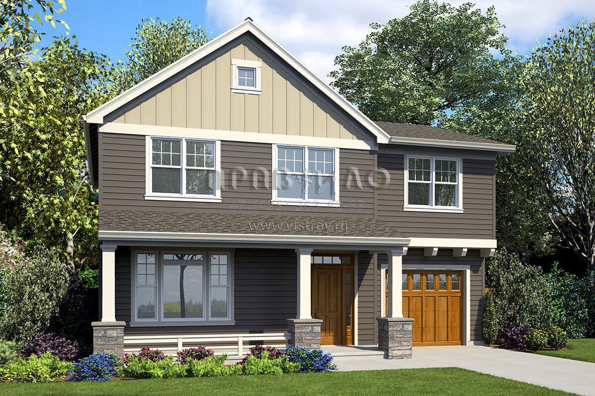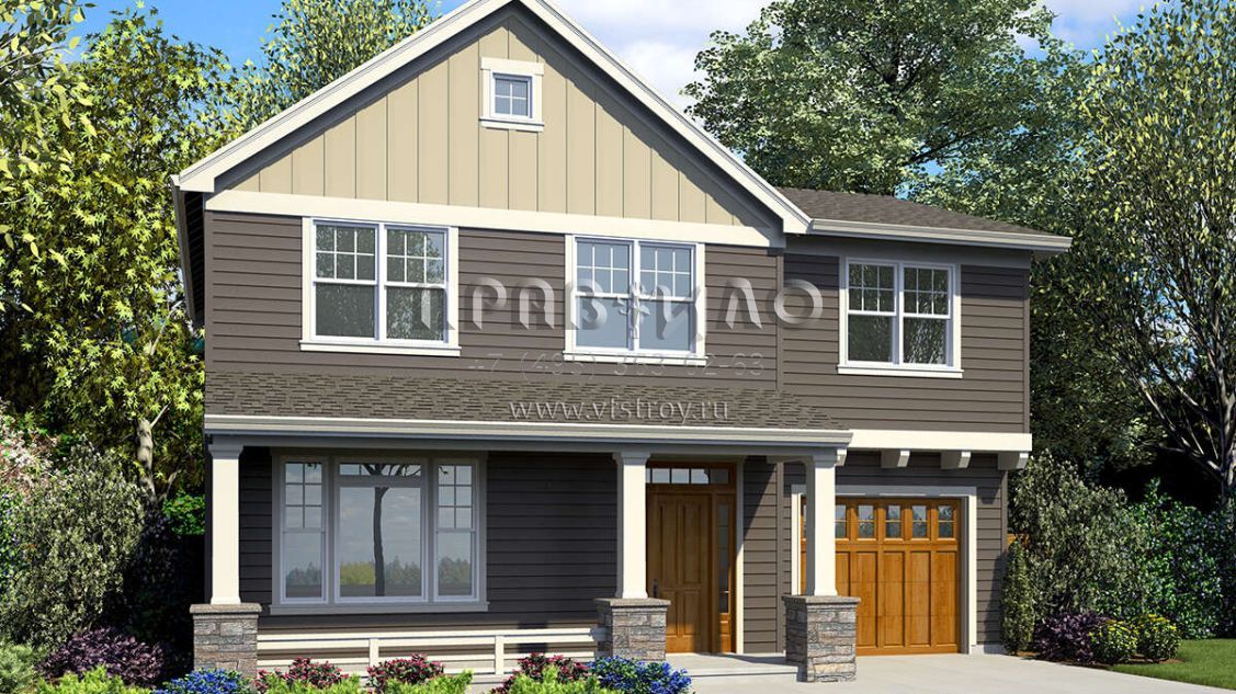 Проект двухэтажного дома с гаражом на одну машину в американском стиле S5-208 (2559-00857)