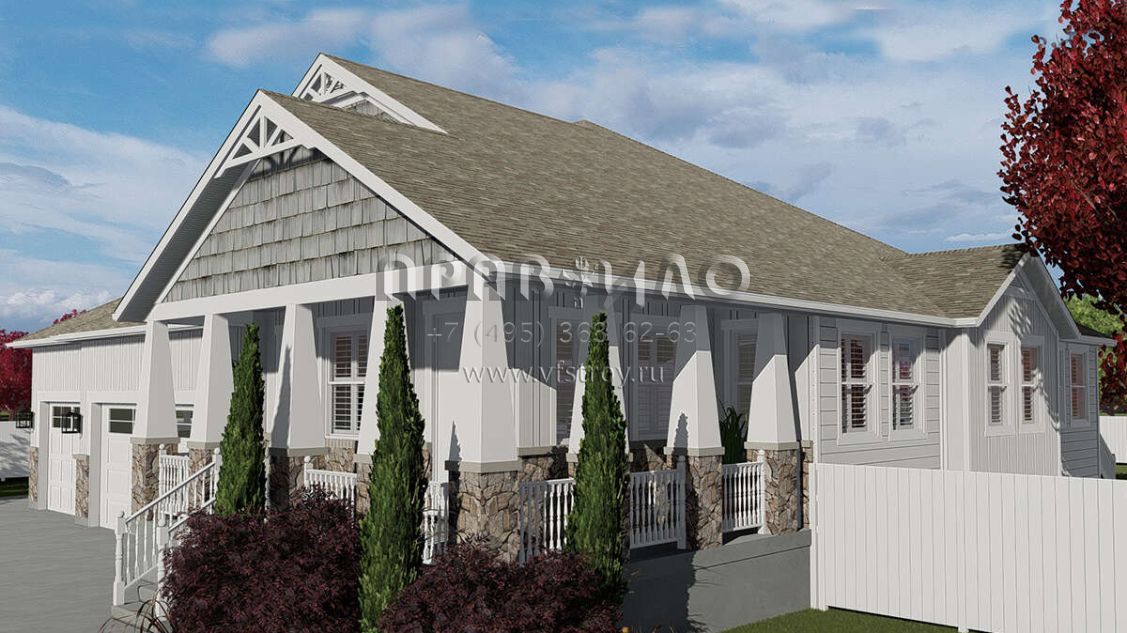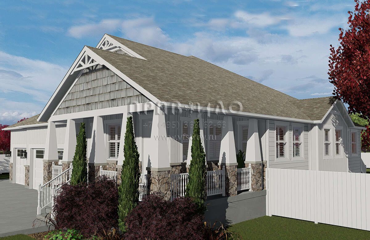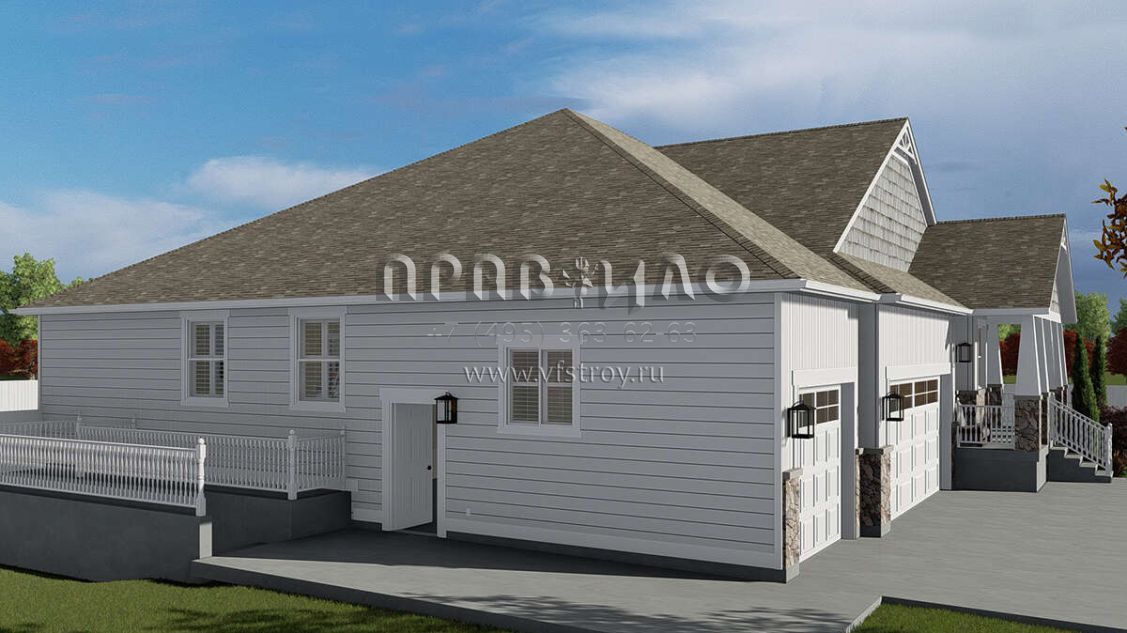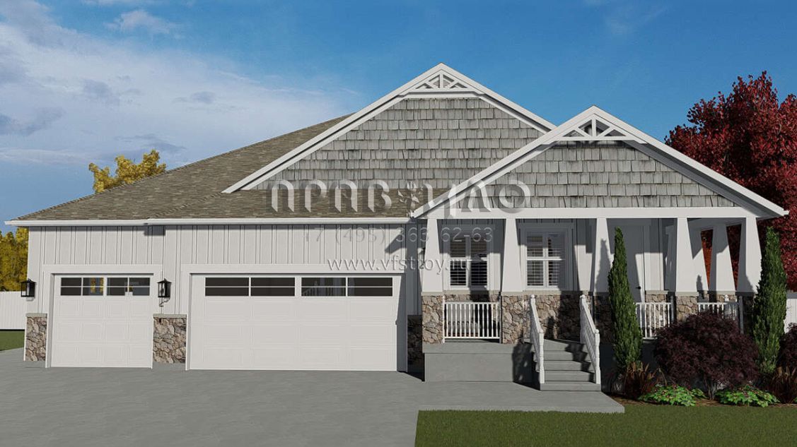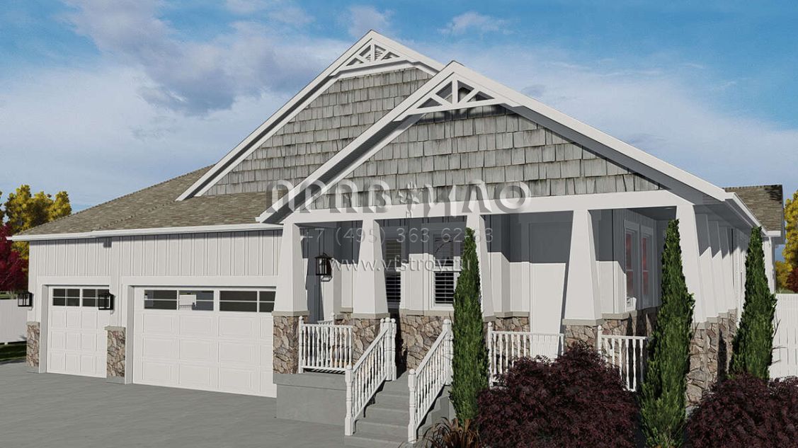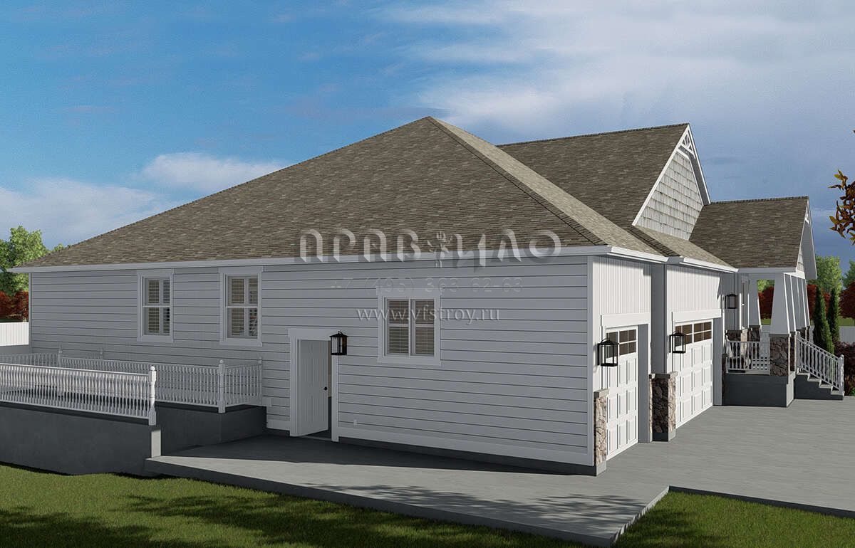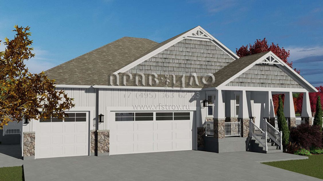 Проект одноэтажного дома с гаражом на три и более машин в американском стиле S5-208 (2802-00059)