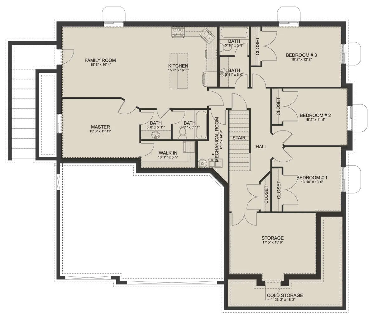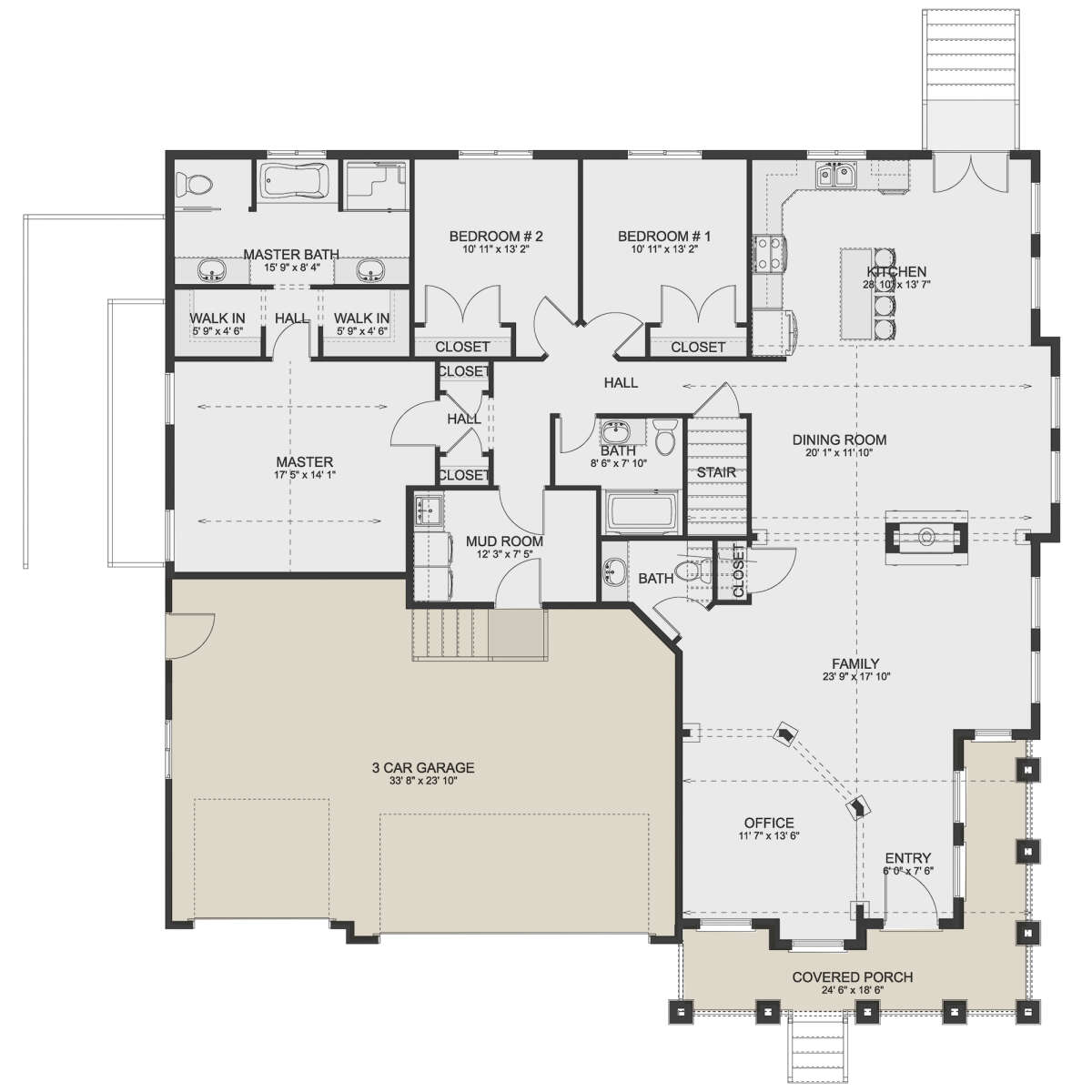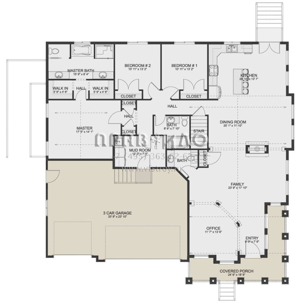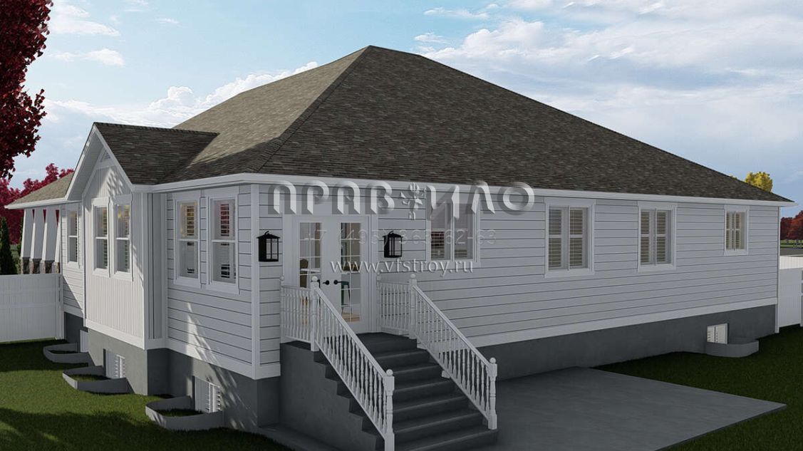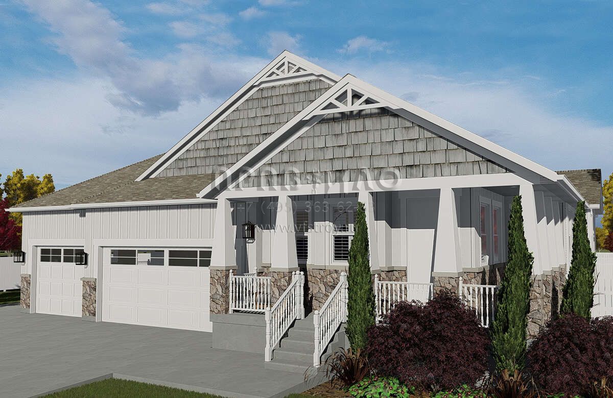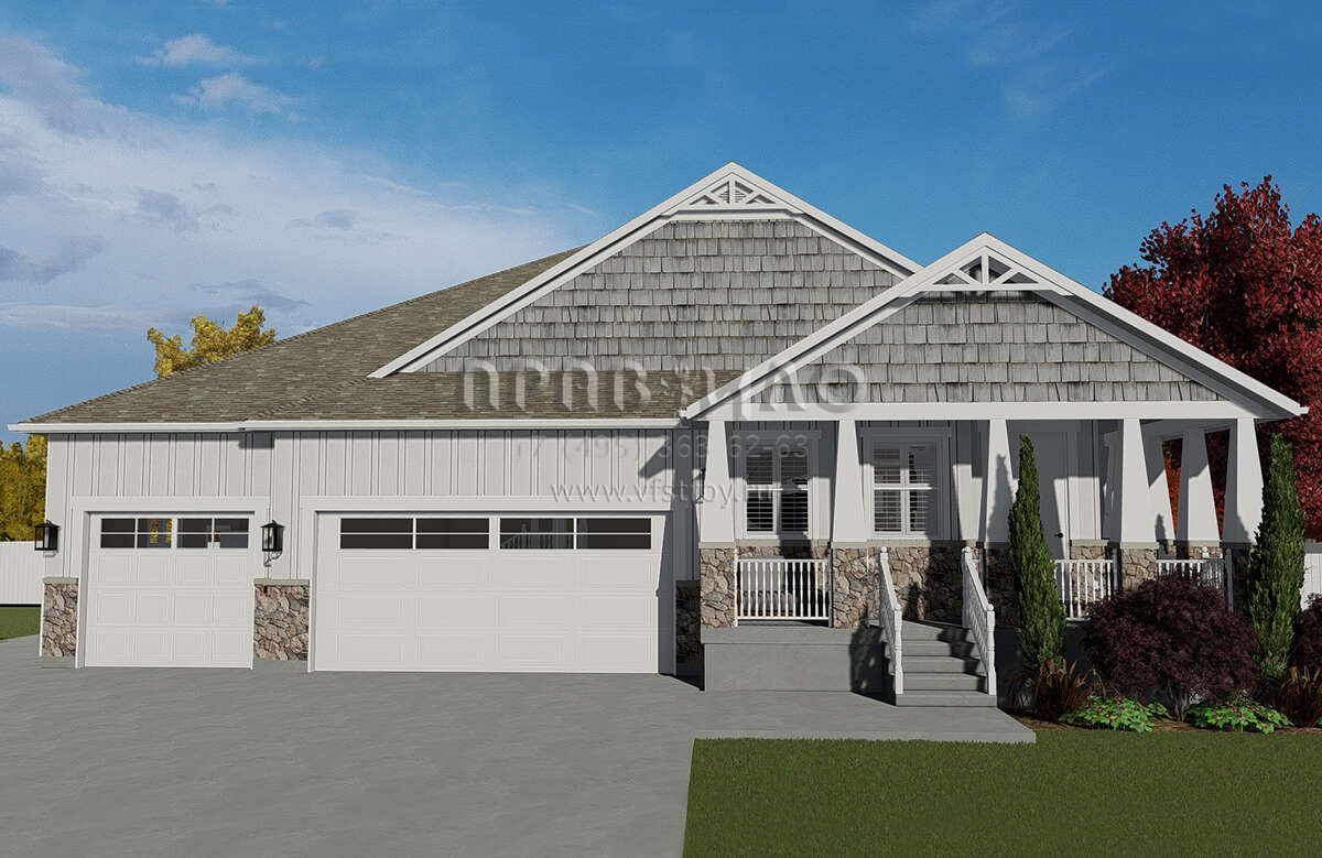 Проект одноэтажного дома с гаражом на три и более машин в американском стиле S5-208 (2802-00059)