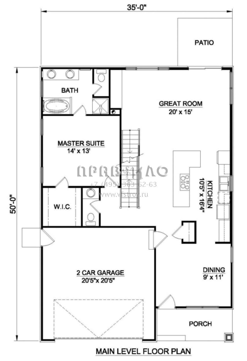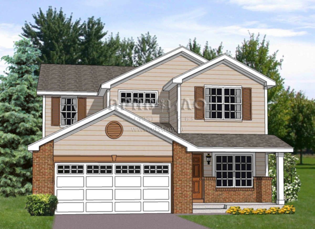 Проект двухэтажного дома с гаражом на две машины в стиле Ранчо S5-208 (340-00022)