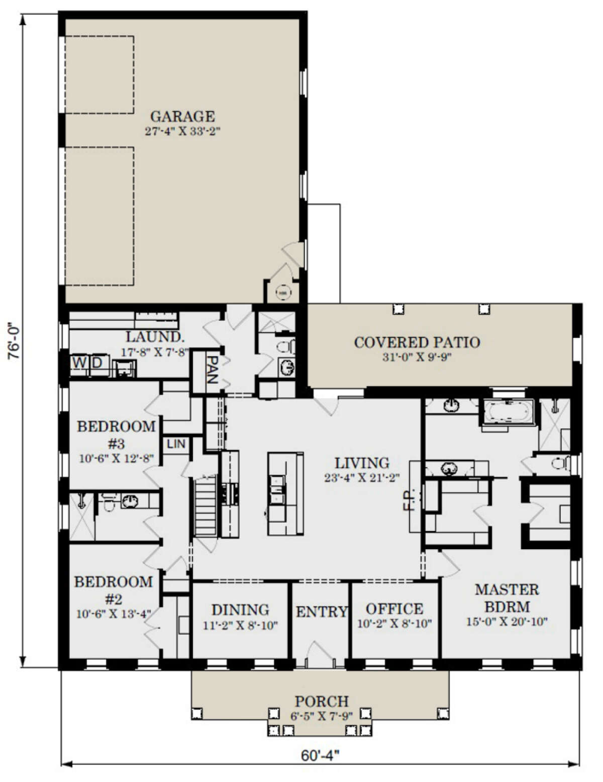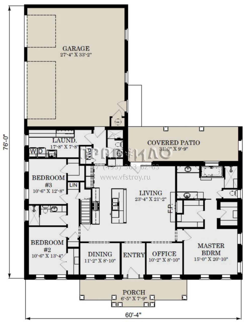 Проект одноэтажного дома с гаражом на три и более машин в стиле Ранчо S5-208 (3558-00006)