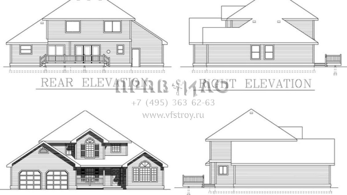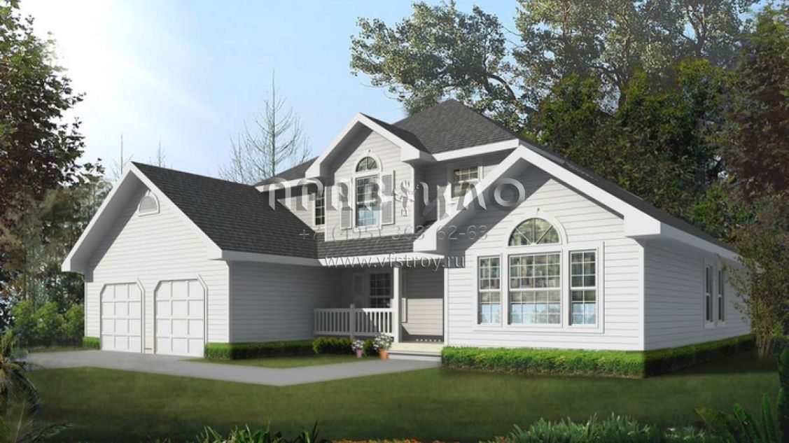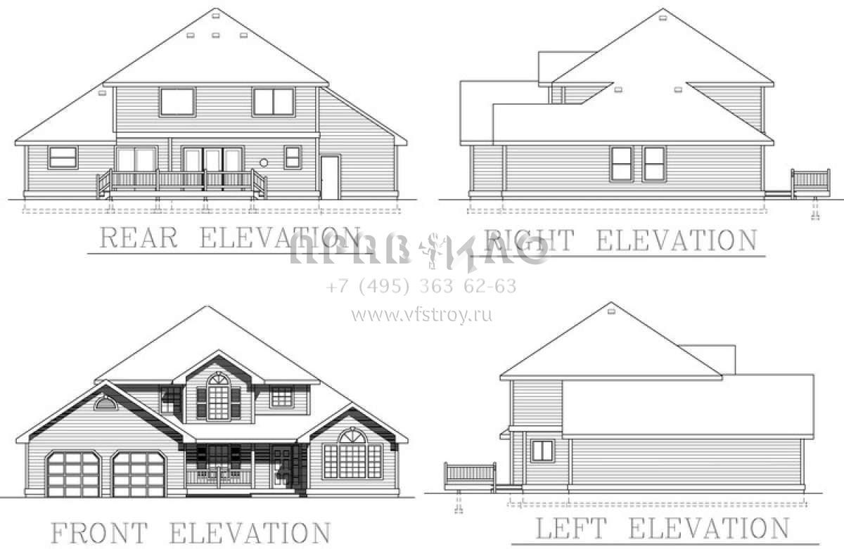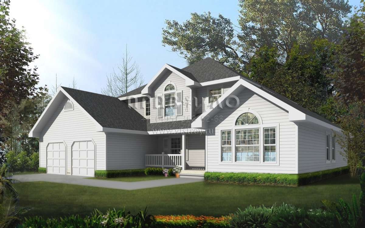 Проект двухэтажного дома с гаражом на три и более машин в стиле Ранчо S5-208 (692-00098)