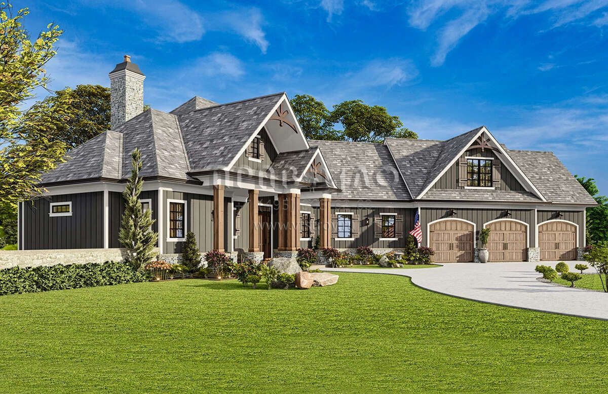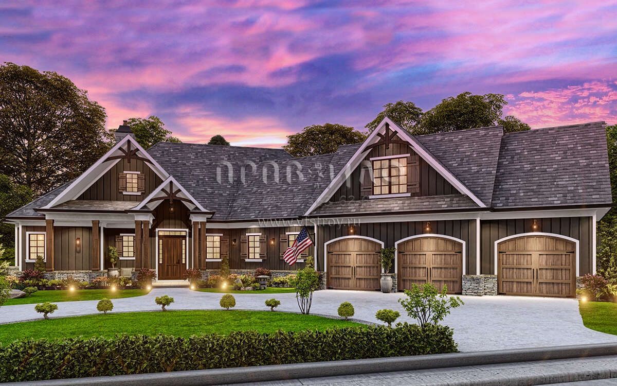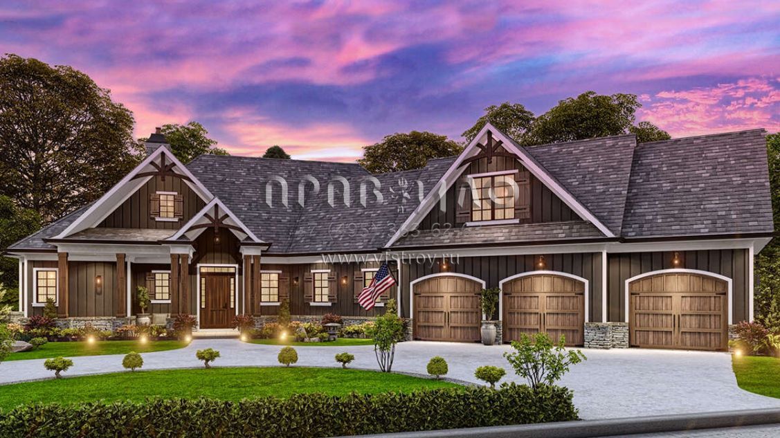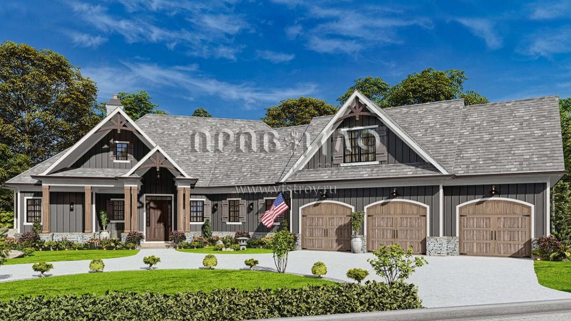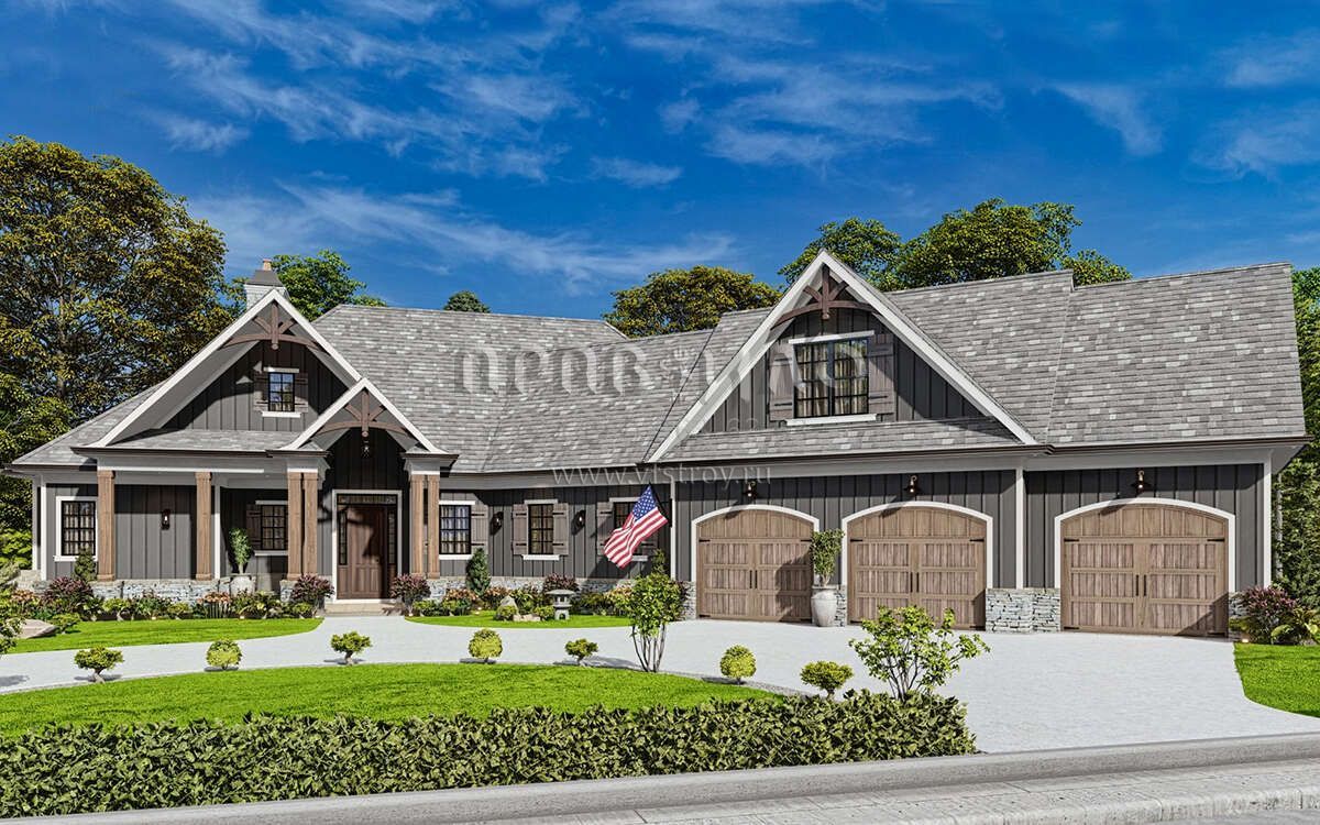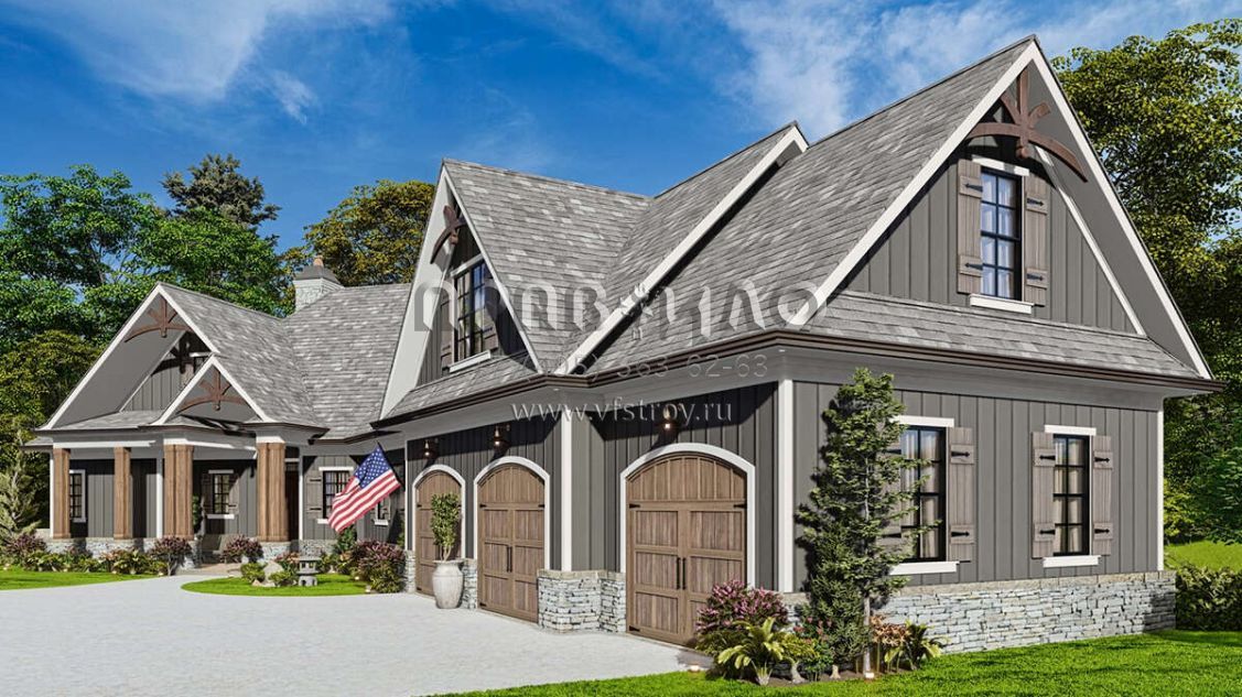 Проект одноэтажного дома с гаражом на три и более машин в американском стиле S5-208 (699-00280)