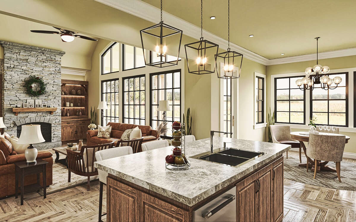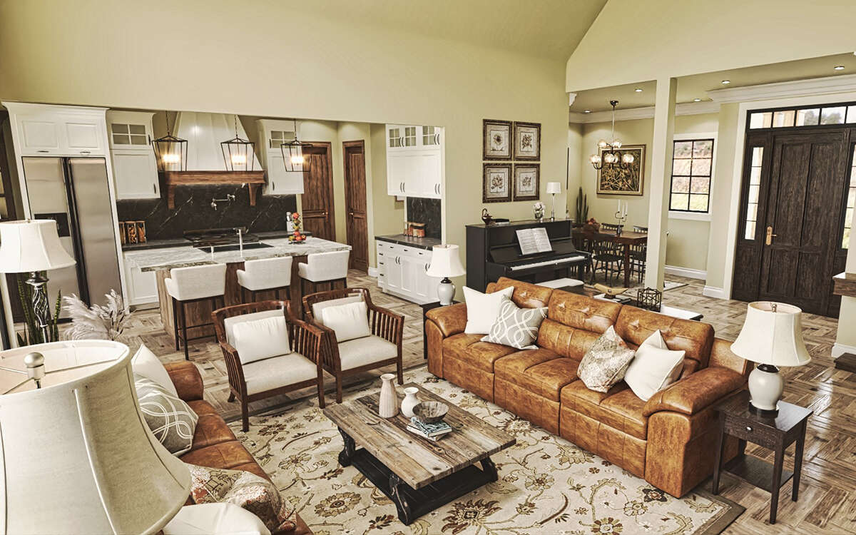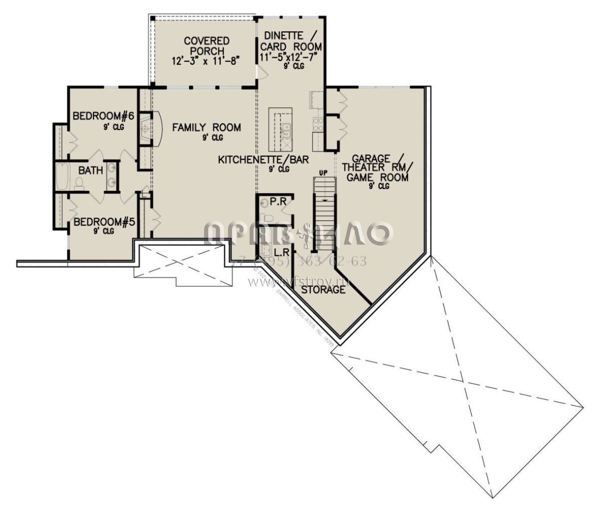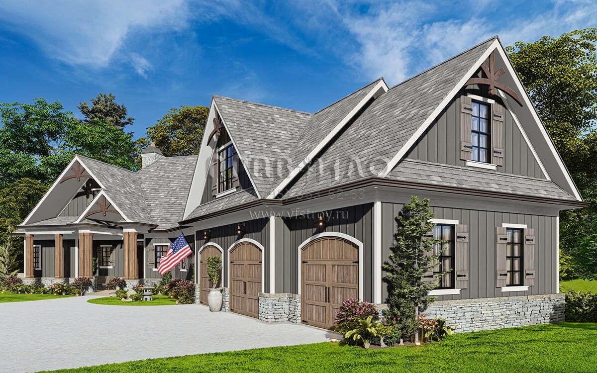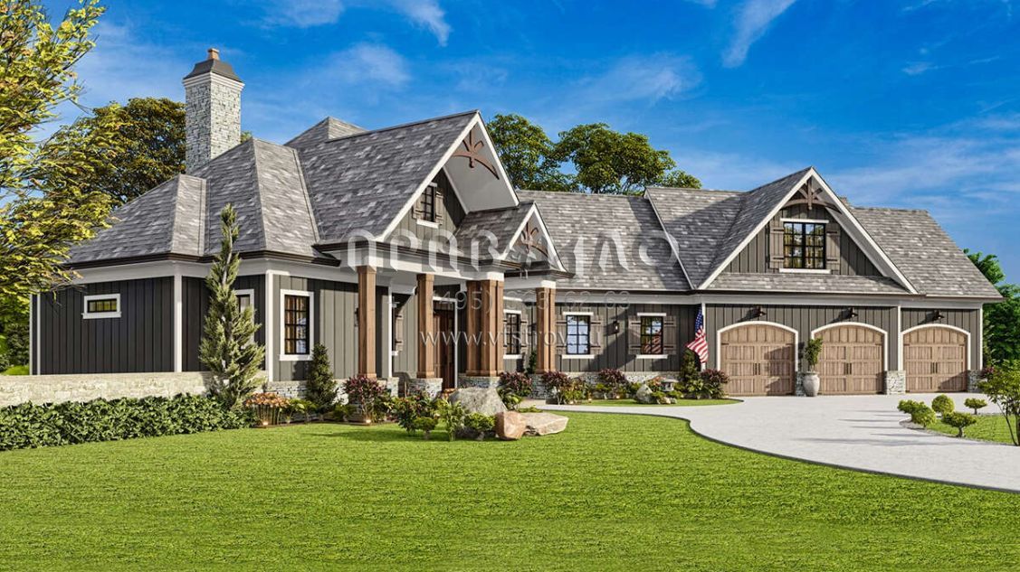 Проект одноэтажного дома с гаражом на три и более машин в американском стиле S5-208 (699-00280)
