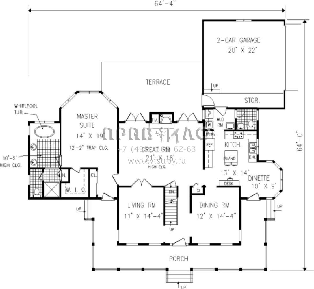 Проект двухэтажного дома с гаражом на две машины в стиле Ранчо S5-209 (033-00031)
