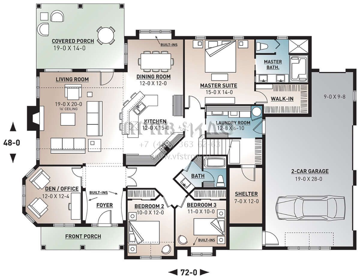 Поскольку этот проект разрабатывался иностранными архитекторами, для строительства дома требуется переработка проекта под действующие в России нормы. Данные визуализации проекта представлены для ознакомления с концепцией проекта. Проект разработан американским архитектурным бюро и представлен America's Best House Plans.