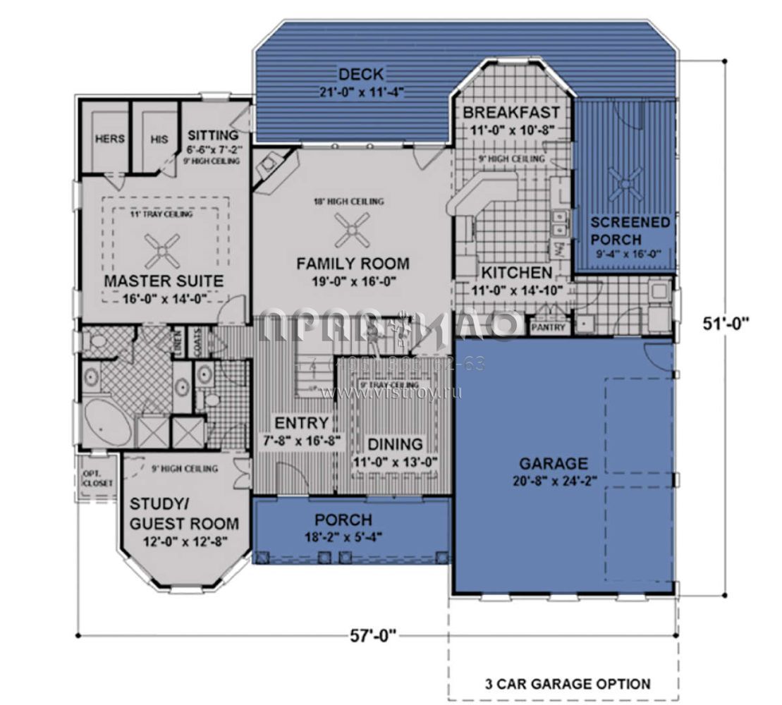 Проект двухэтажного дома с гаражом на две машины в стиле Ранчо S5-209 (036-00102)