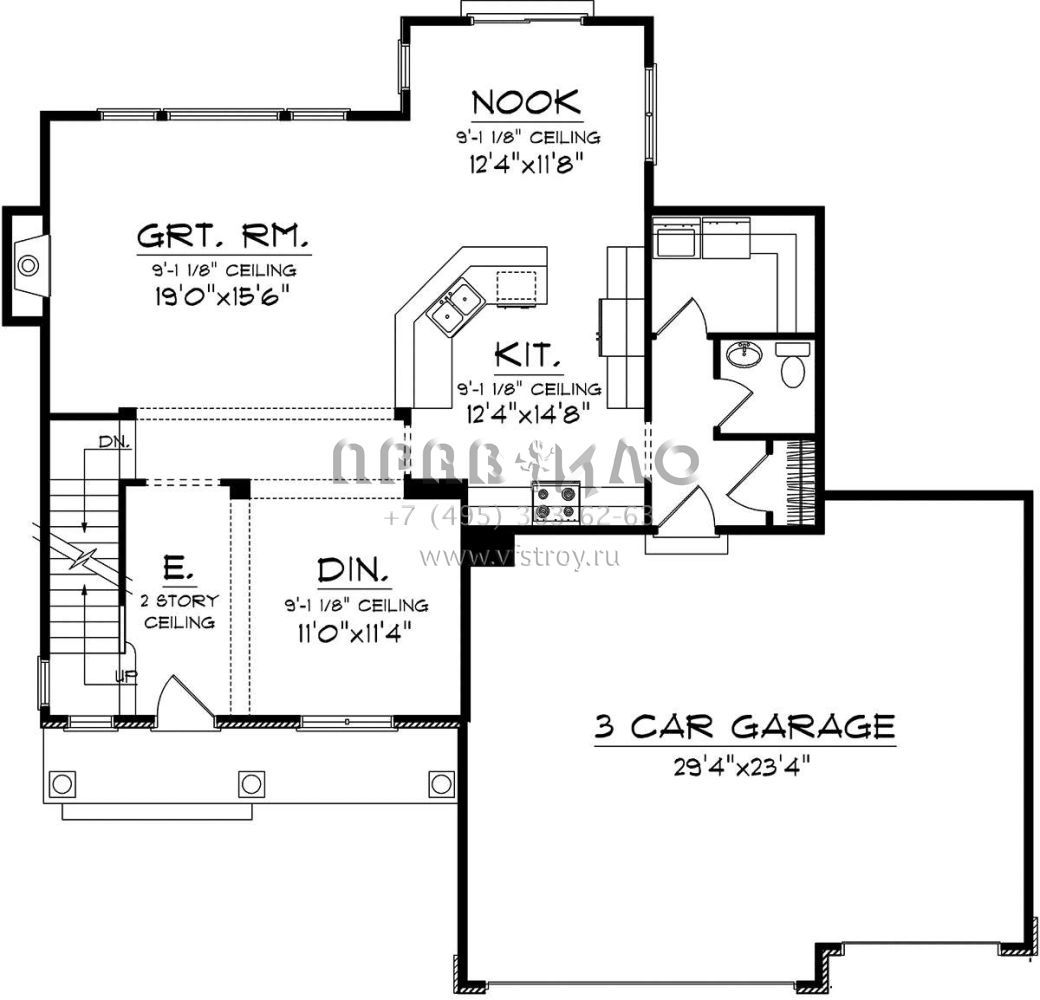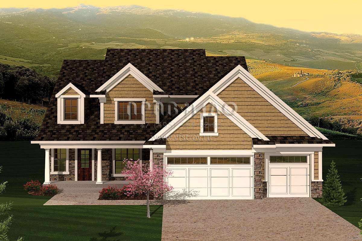 Проект двухэтажного дома с гаражом на три и более машин в американском стиле S5-209 (1020-00237)