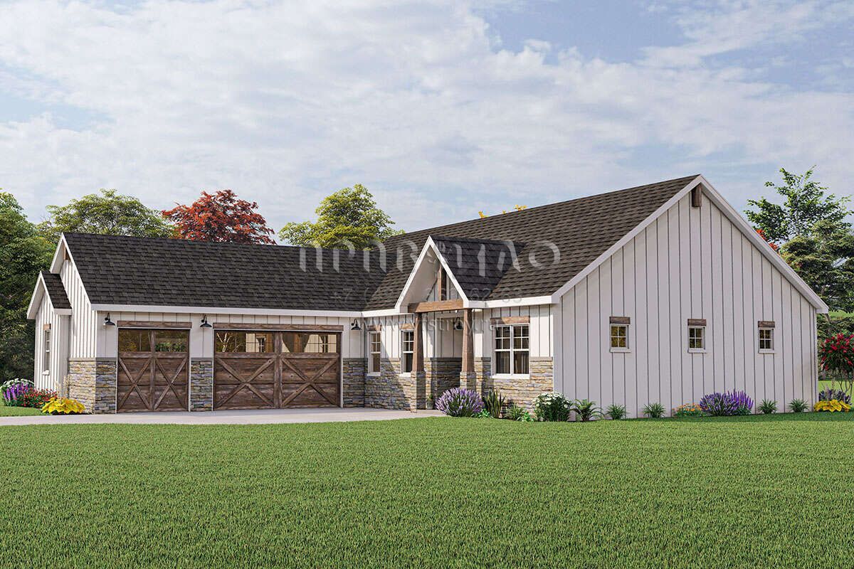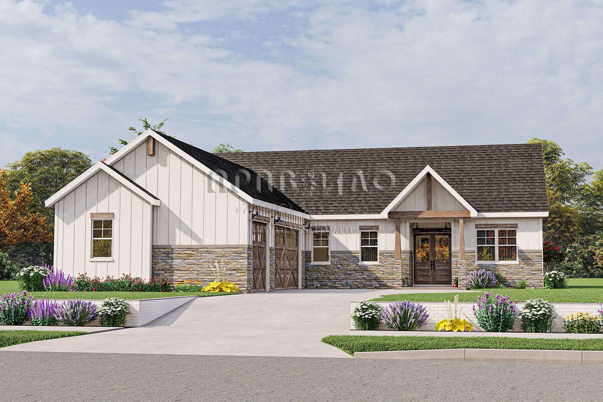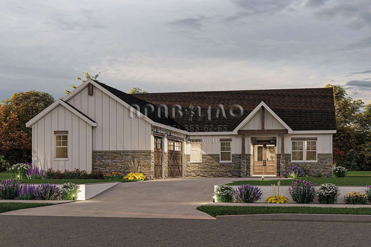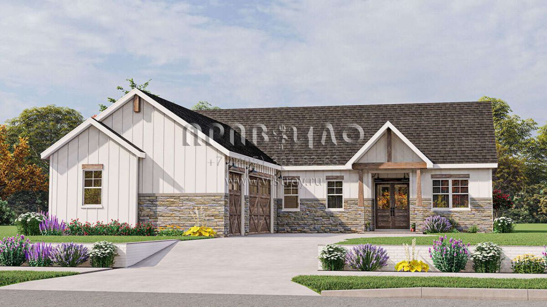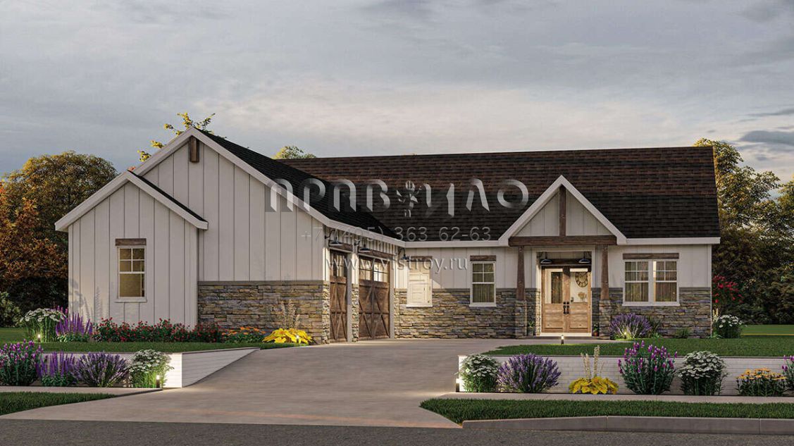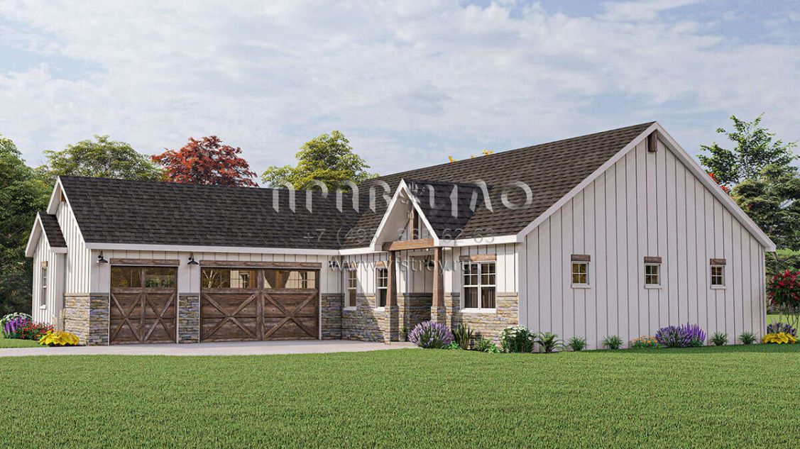 Проект одноэтажного дома с гаражом на три и более машин в современном стиле S5-209 (1462-00057)