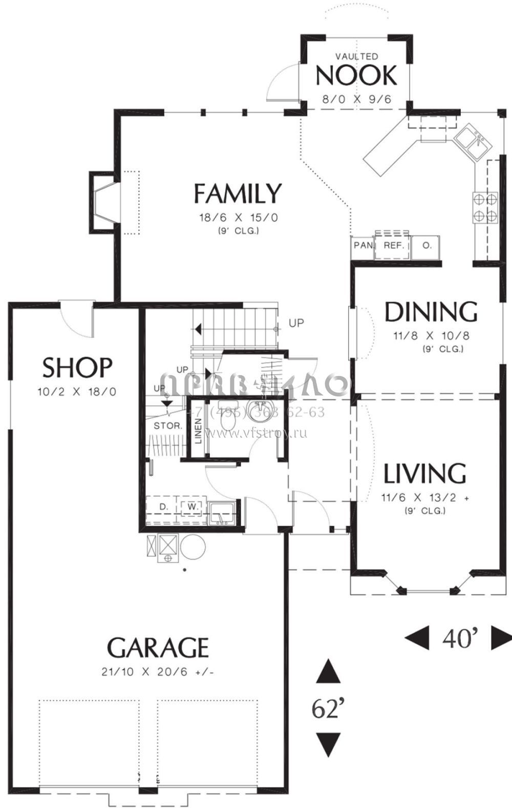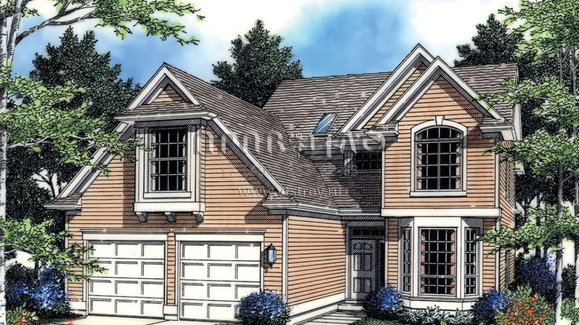 Проект двухэтажного дома с гаражом на три и более машин в стиле Ранчо S5-209 (2559-00312)