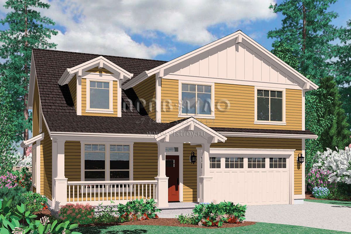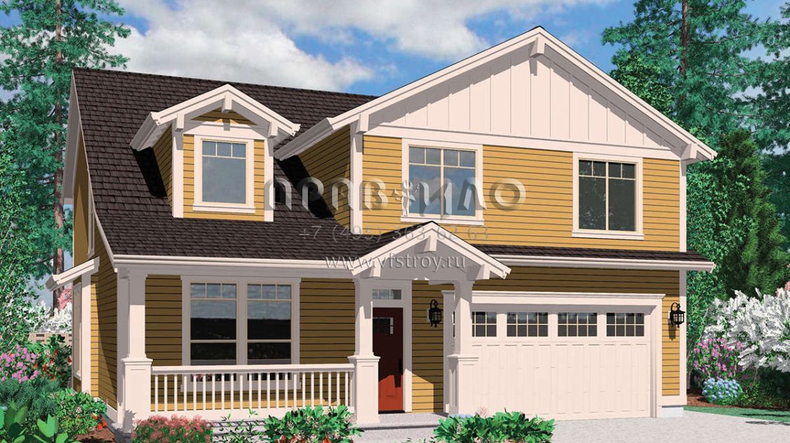 Проект двухэтажного дома с гаражом на две машины в стиле Ранчо S5-209 (2559-00332)