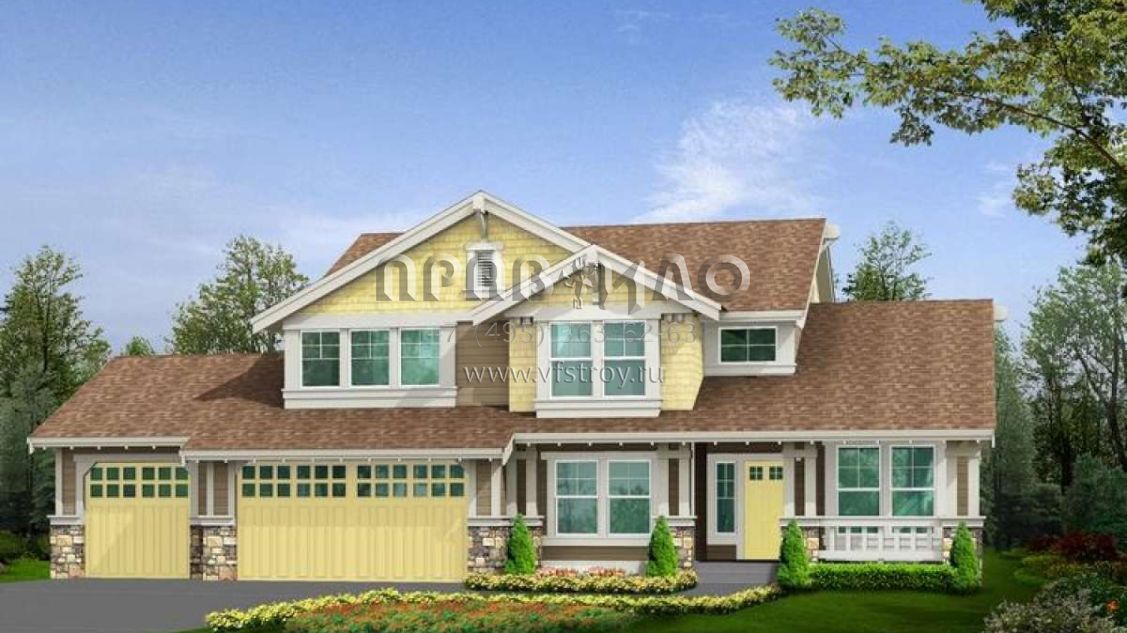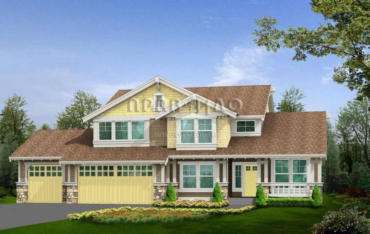 Проект двухэтажного дома с гаражом на три и более машин в стиле Шале S5-209 (341-00053)