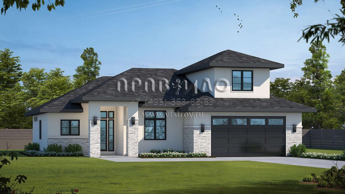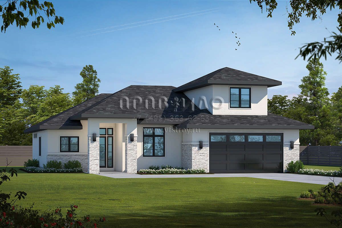 Проект двухэтажного дома с гаражом на две машины в современном стиле S5-209 (402-01738)