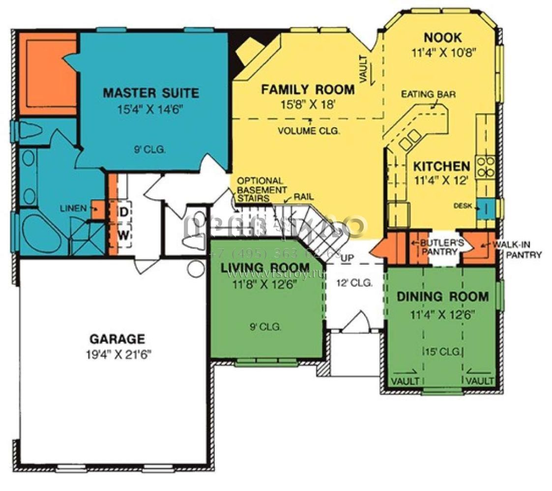 Проект двухэтажного дома с гаражом на две машины в стиле Ранчо S5-209 (4848-00302)