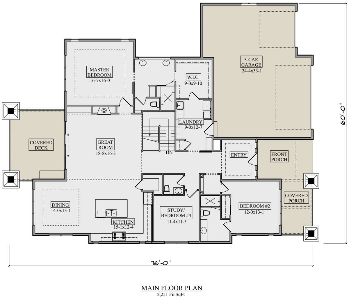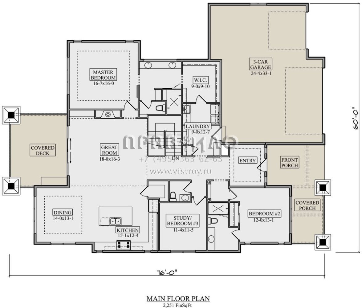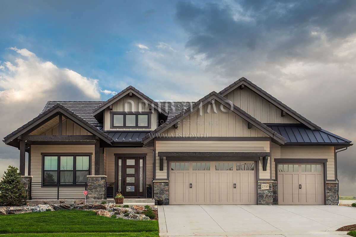 Проект одноэтажного дома с гаражом на три и более машин в американском стиле S5-209 (5631-00138)