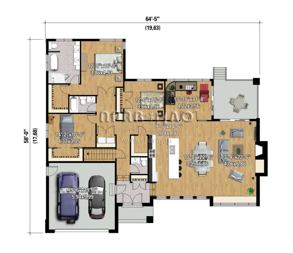 Проект одноэтажного дома с гаражом на две машины в современном стиле S5-209 (6146-00589)