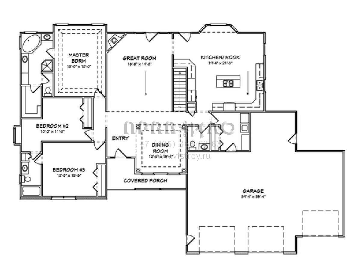 S5-209 (849-00088) Это иностранный проект, для которого требуется адаптация под нормы, действующие в Российской Федерации. Вы видите проект дома в стиле Ранчо. В этом доме сочетаются черты сельской постройки и аскетичность лофта. Внутри жильцы смогут проводить время с максимальным комфортом. Обратим внимание, что сейчас на планировках все размеры представлены в футах. Для перевода в метры вам необходимо значение в футах умножить на 0,3048.