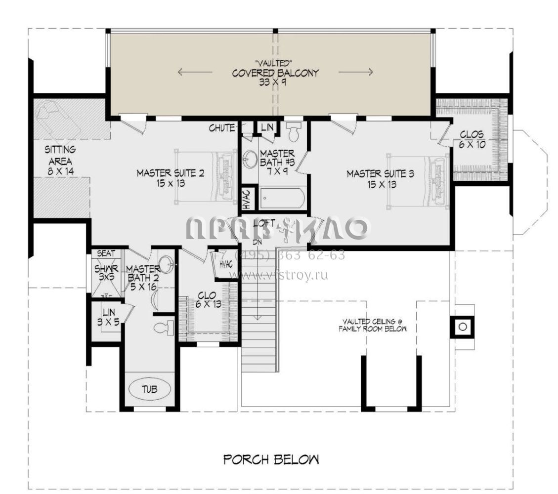 Проект двухэтажного дома без гаража в стиле Ранчо S5-209 (940-00241)