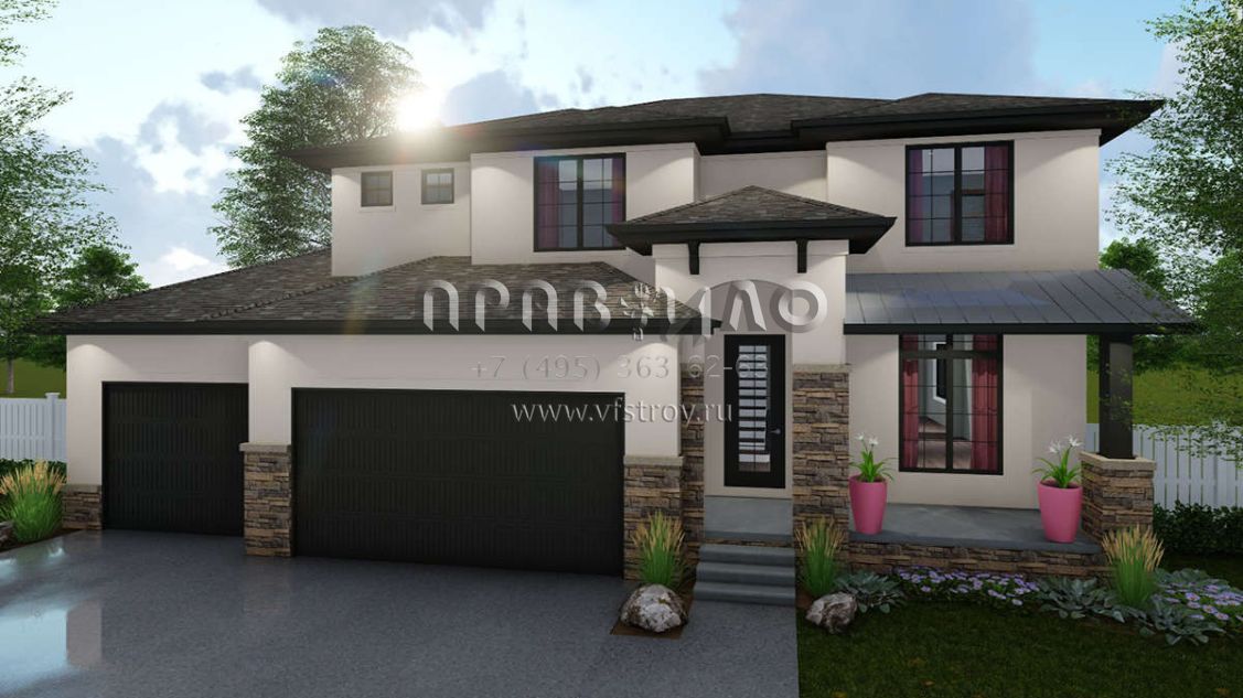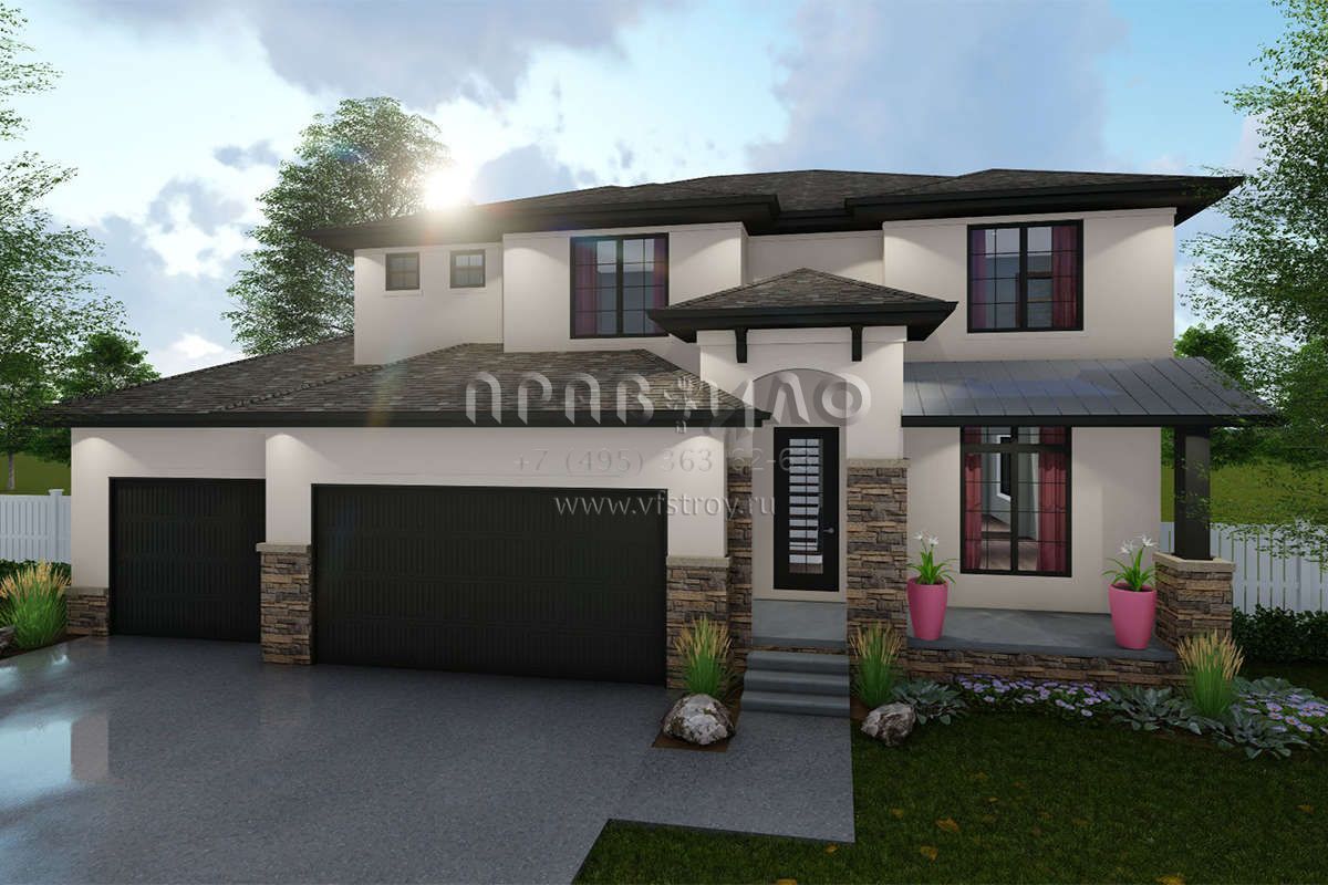 Проект двухэтажного дома с гаражом на три и более машин в скандинавском стиле S5-209 (963-00316)