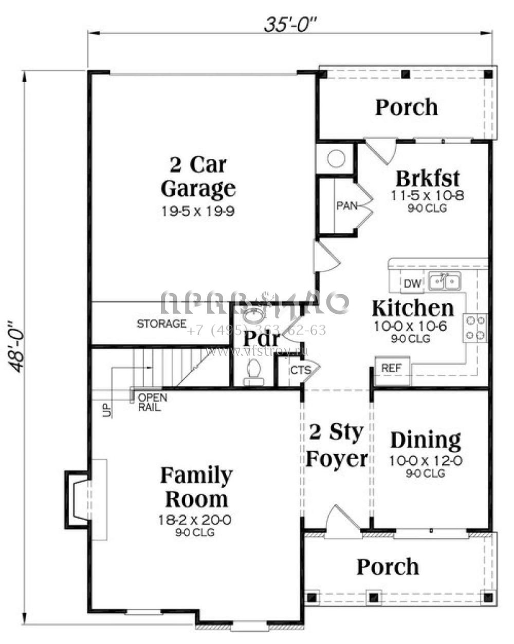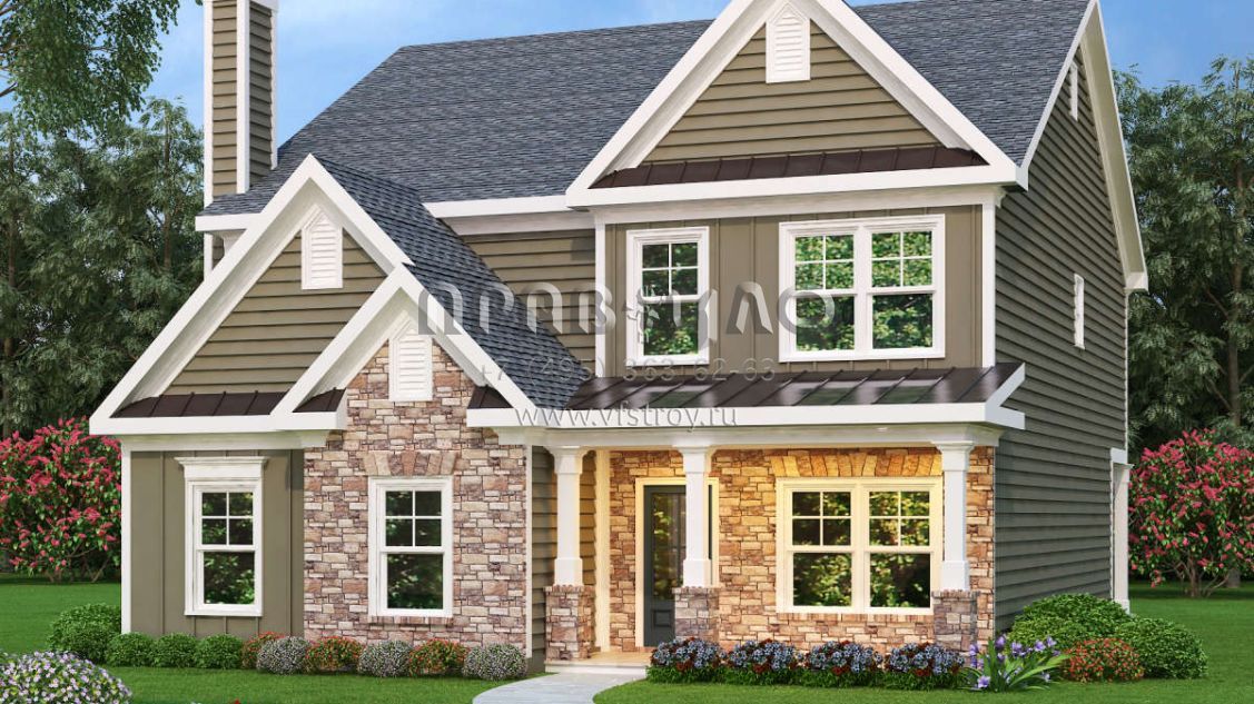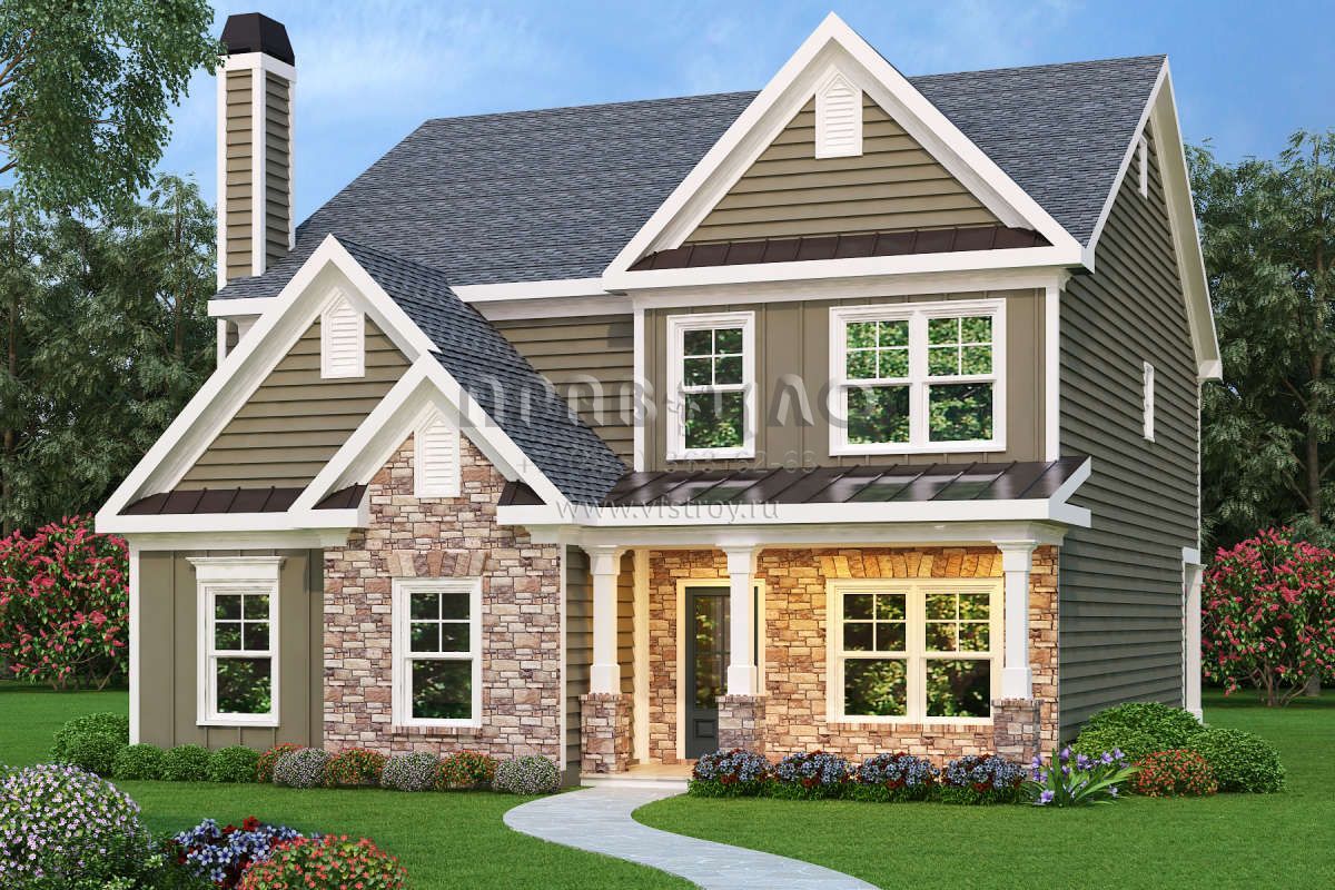 Проект двухэтажного дома с гаражом на две машины в стиле Ранчо S5-210 (009-00231)