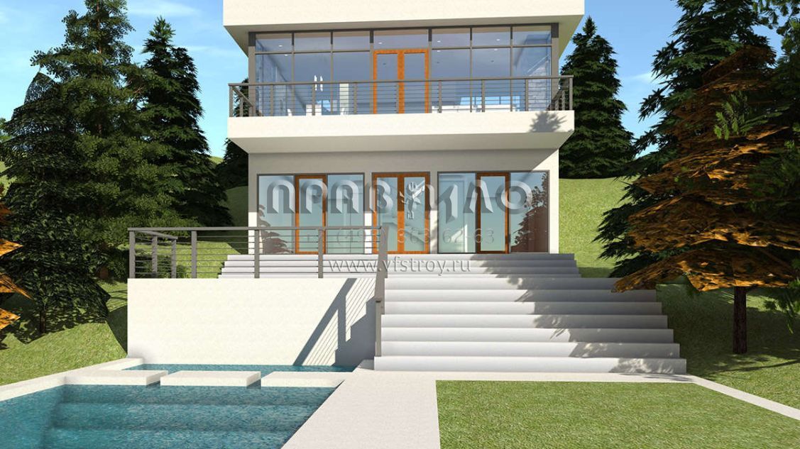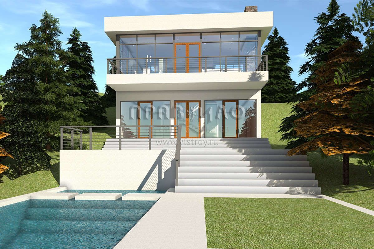 Проект дома на склоне с гаражом на две машины в стиле хайтек S5-210 (028-00145)