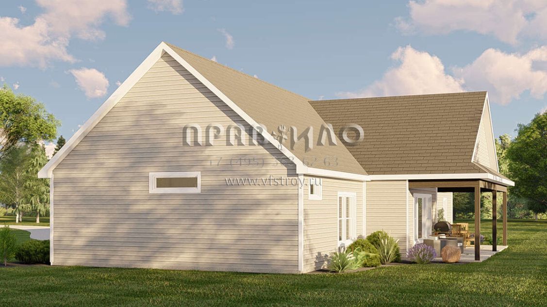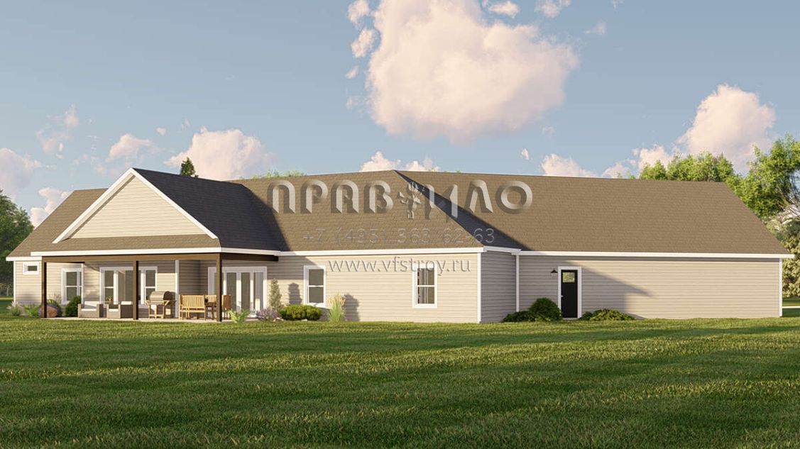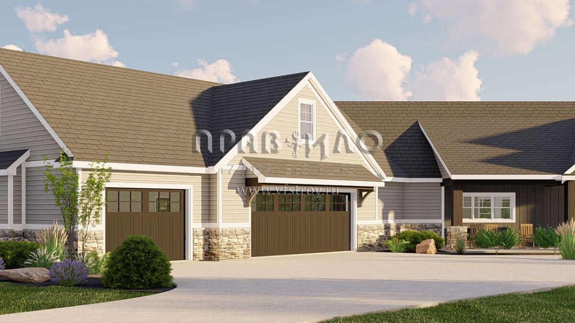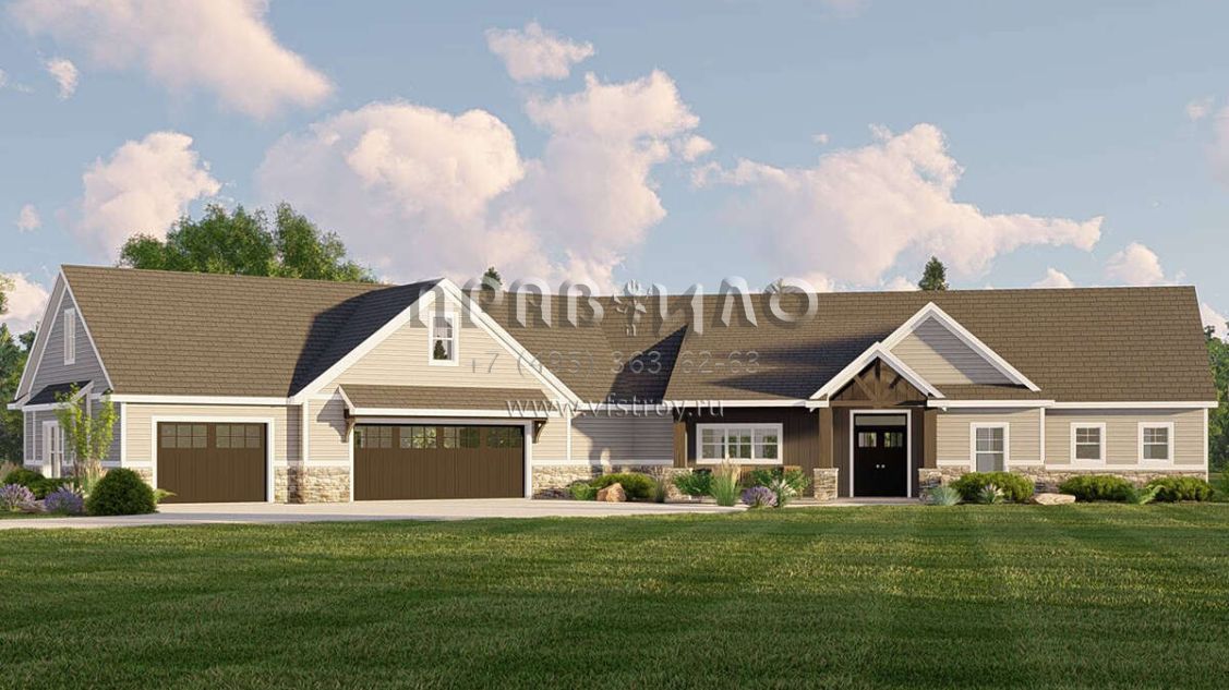 Проект одноэтажного дома с гаражом на три и более машин в американском стиле S5-210 (5032-00187)
