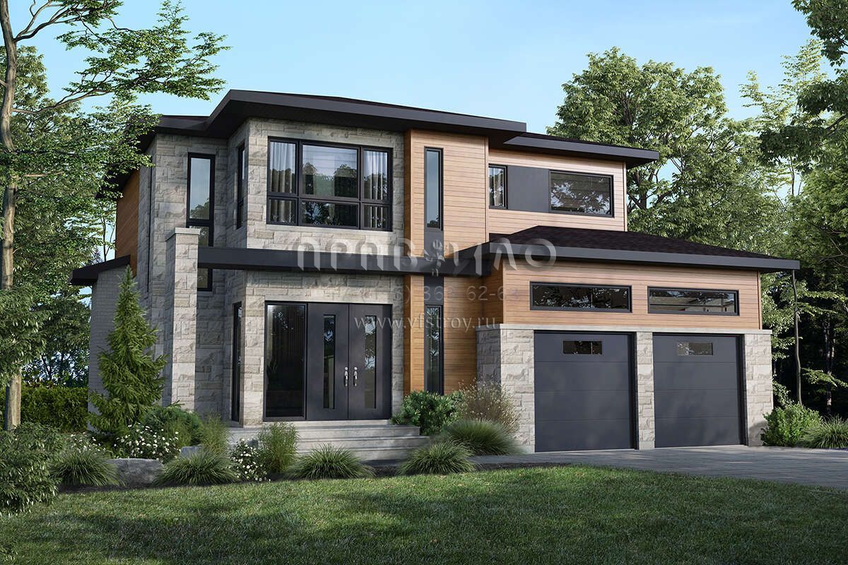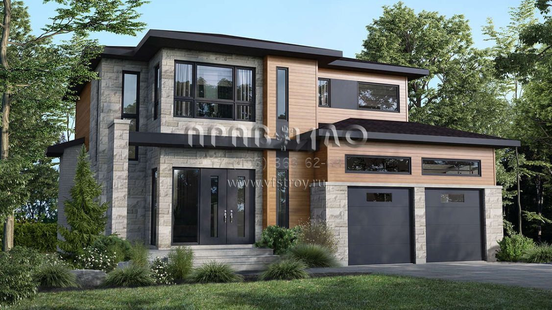 Проект двухэтажного дома с гаражом на две машины в современном стиле S5-210 (6146-00539)
