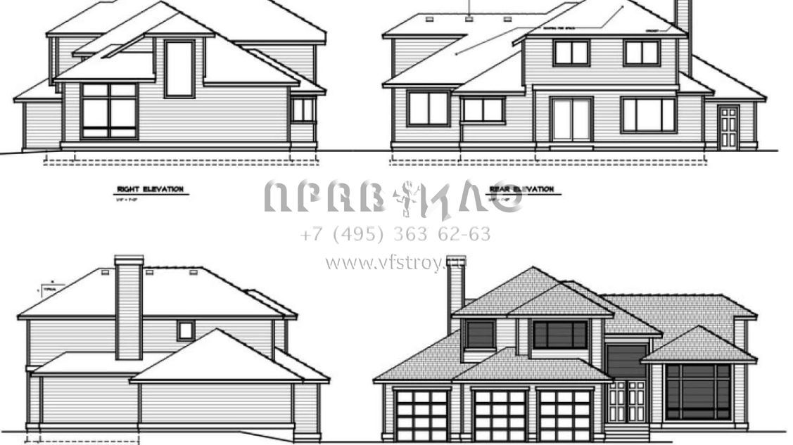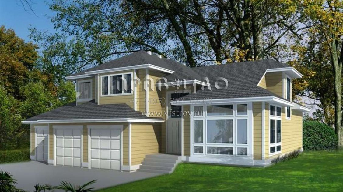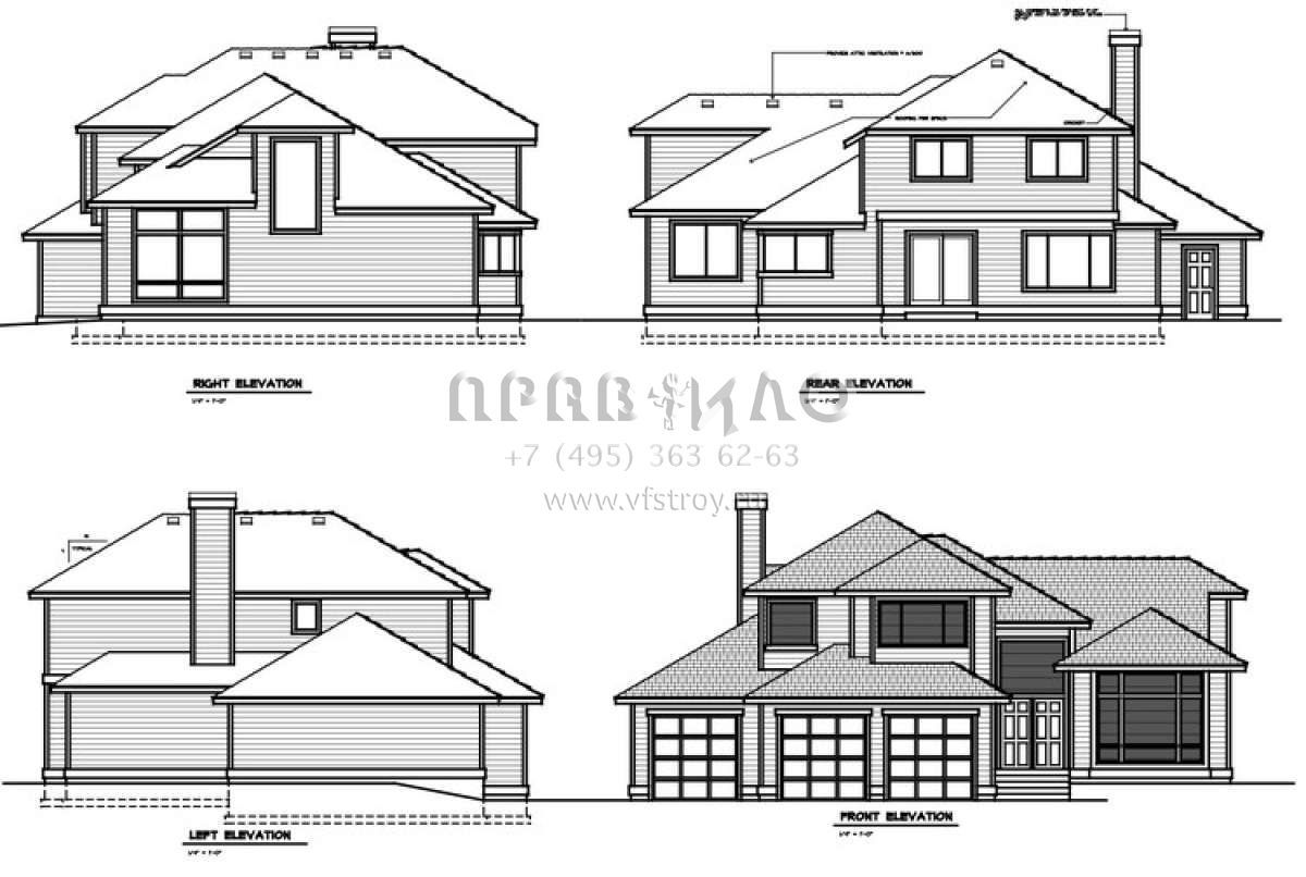Проект двухэтажного дома с гаражом на три и более машин в стиле Ранчо S5-210 (692-00086)