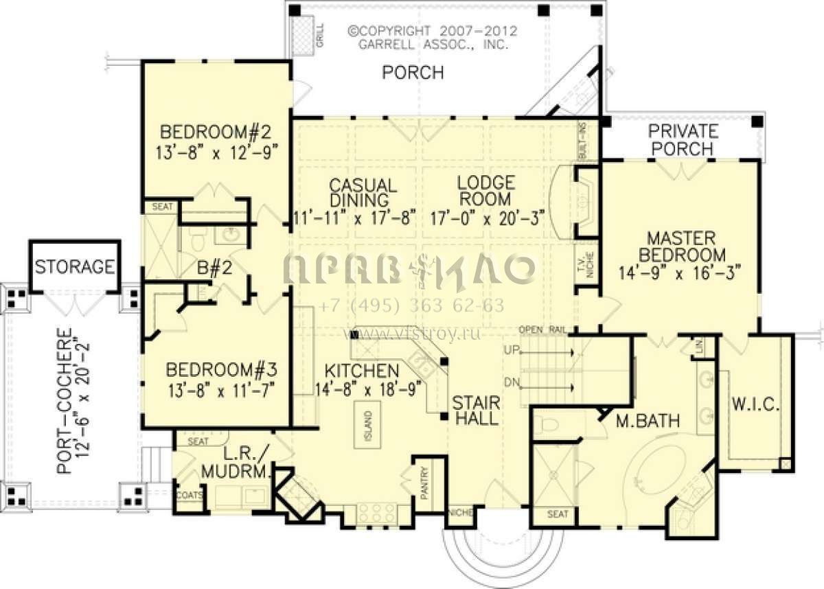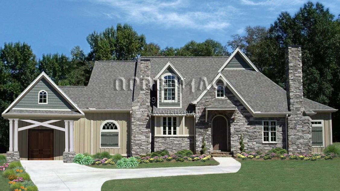 Проект одноэтажного дома с гаражом на одну машину в стиле Ранчо S5-210 (699-00041)