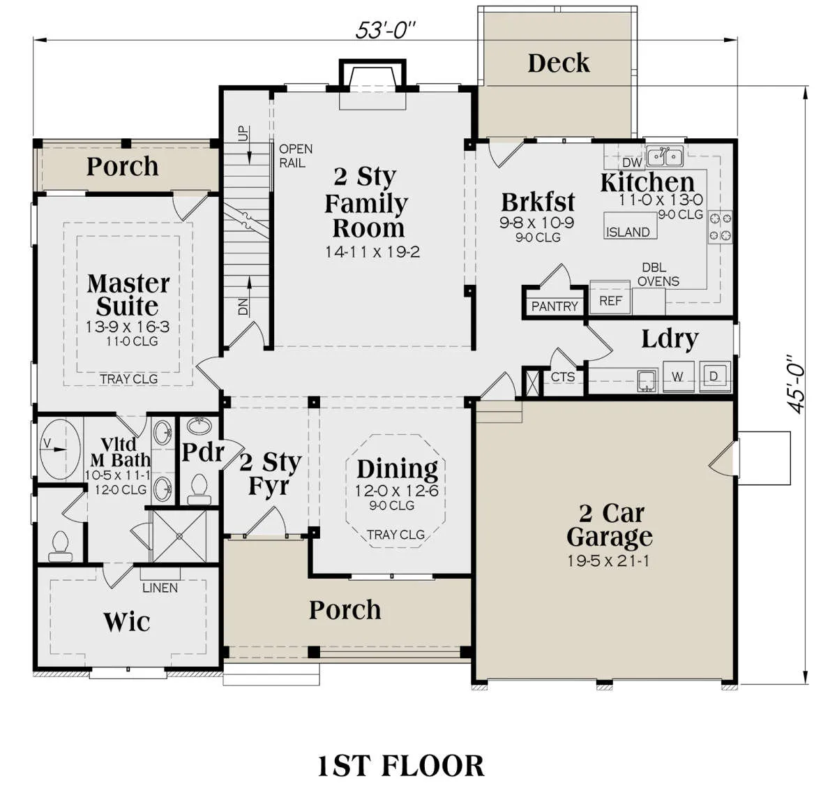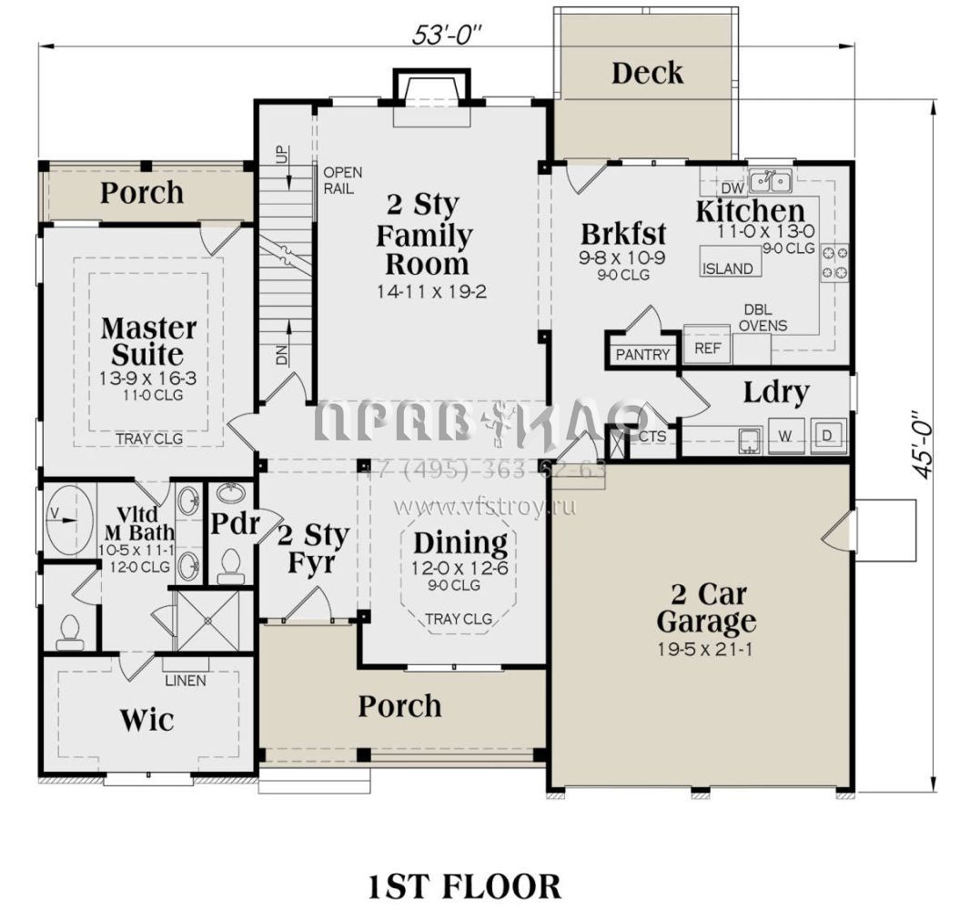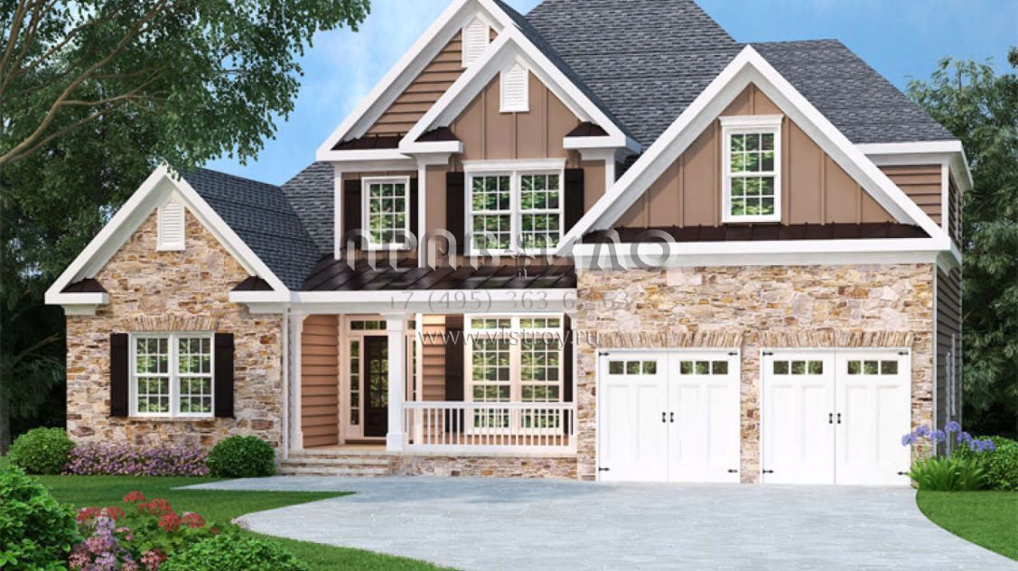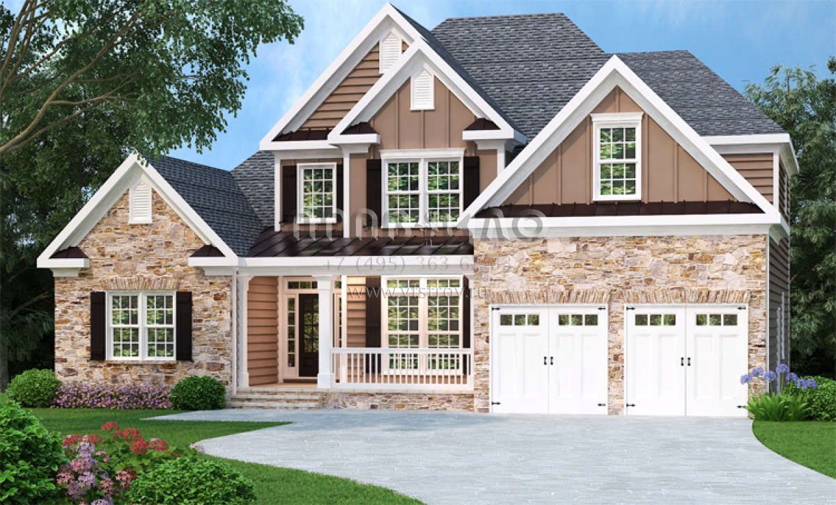 Проект двухэтажного дома с гаражом на две машины в стиле Ранчо S5-211 (009-00081)