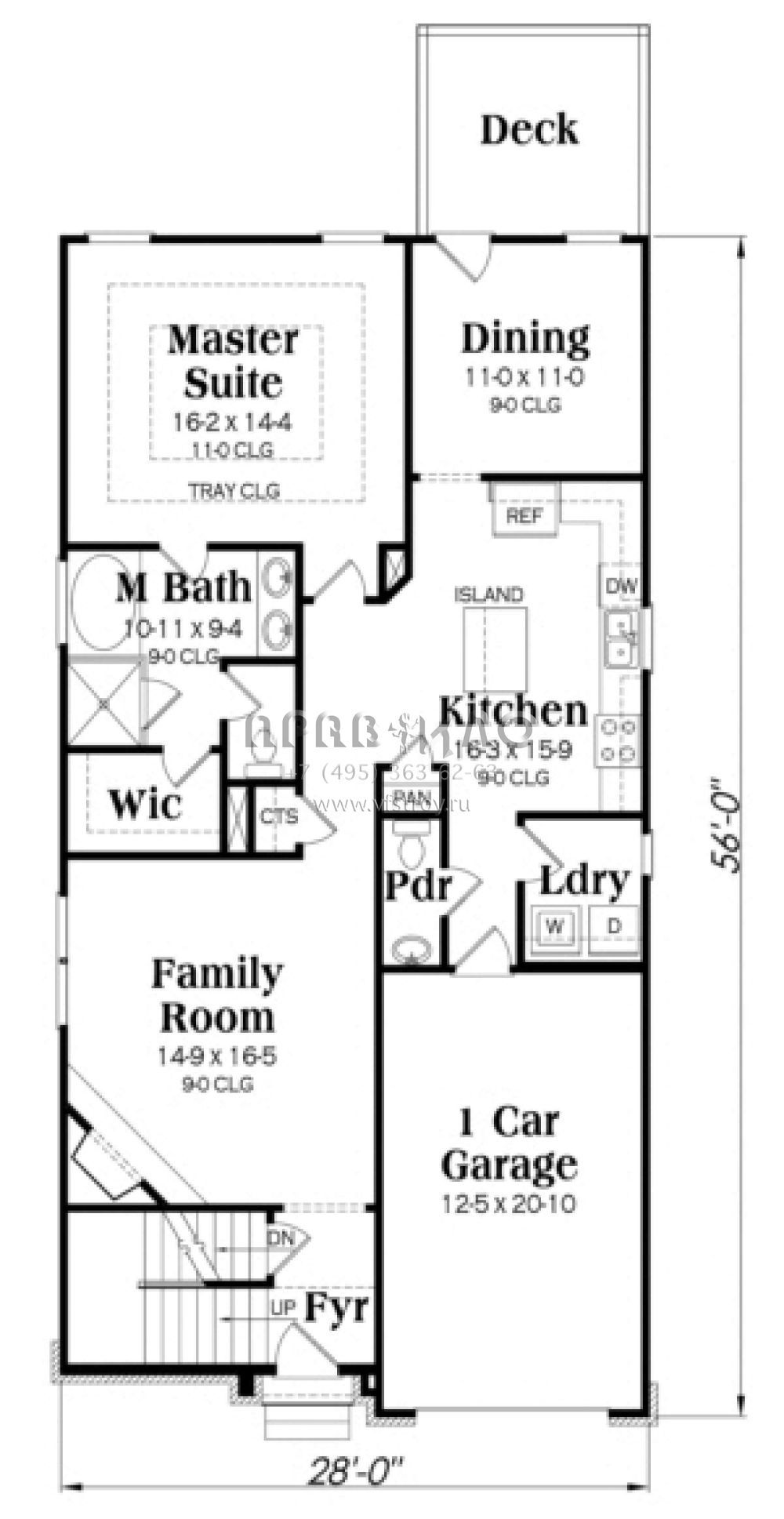 Проект двухэтажного дома с гаражом на одну машину в стиле Ранчо S5-211 (009-00127)