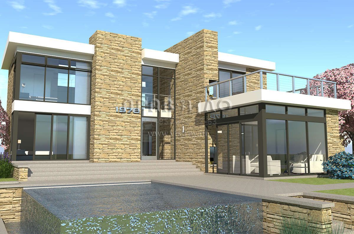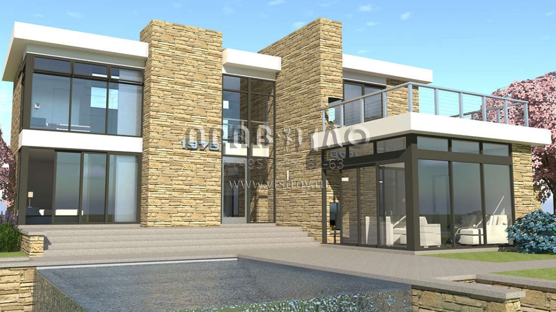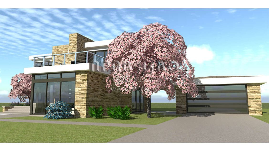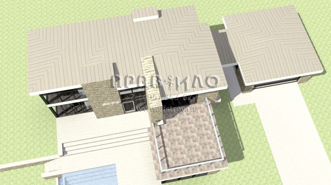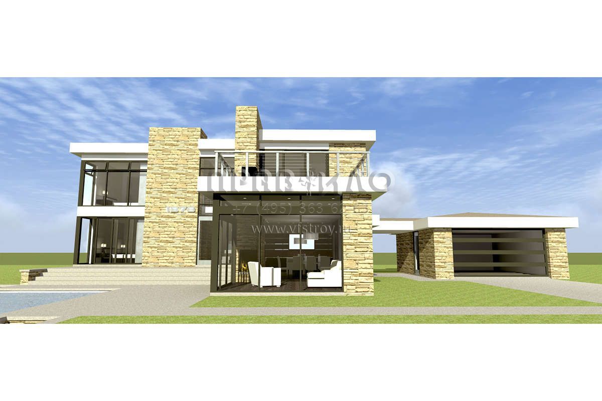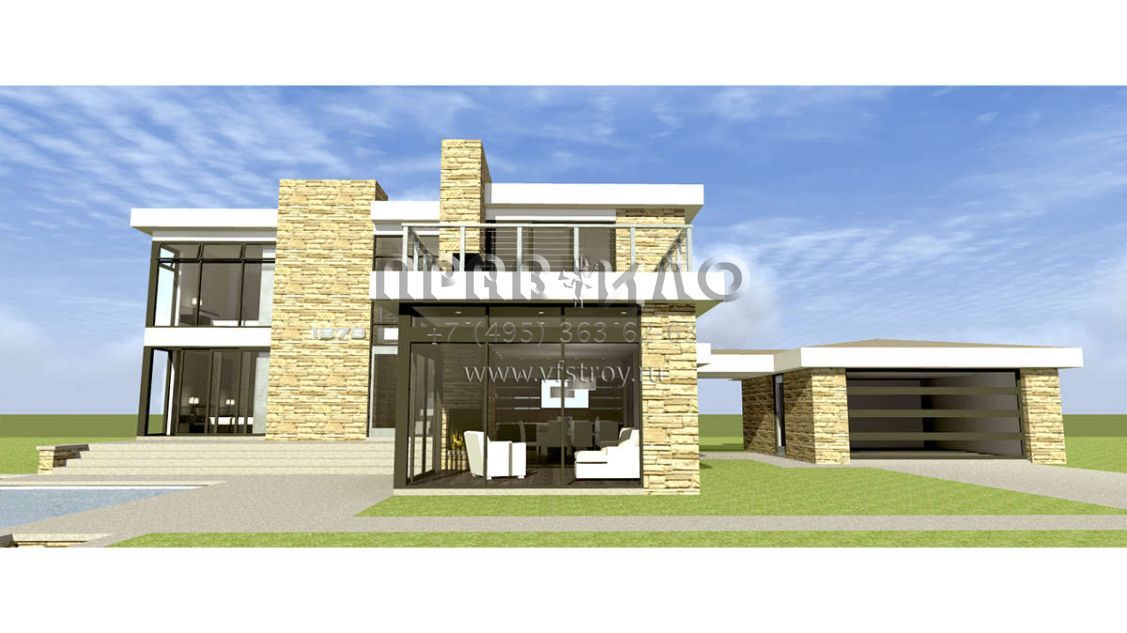 Проект двухэтажного дома с гаражом на две машины в стиле хайтек S5-211 (028-00039)