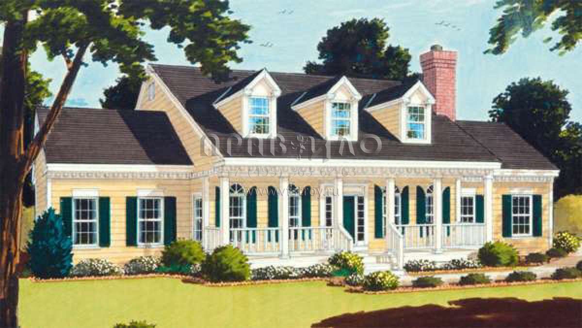 Проект двухэтажного дома с гаражом на две машины в стиле Ранчо S5-211 (033-00043)