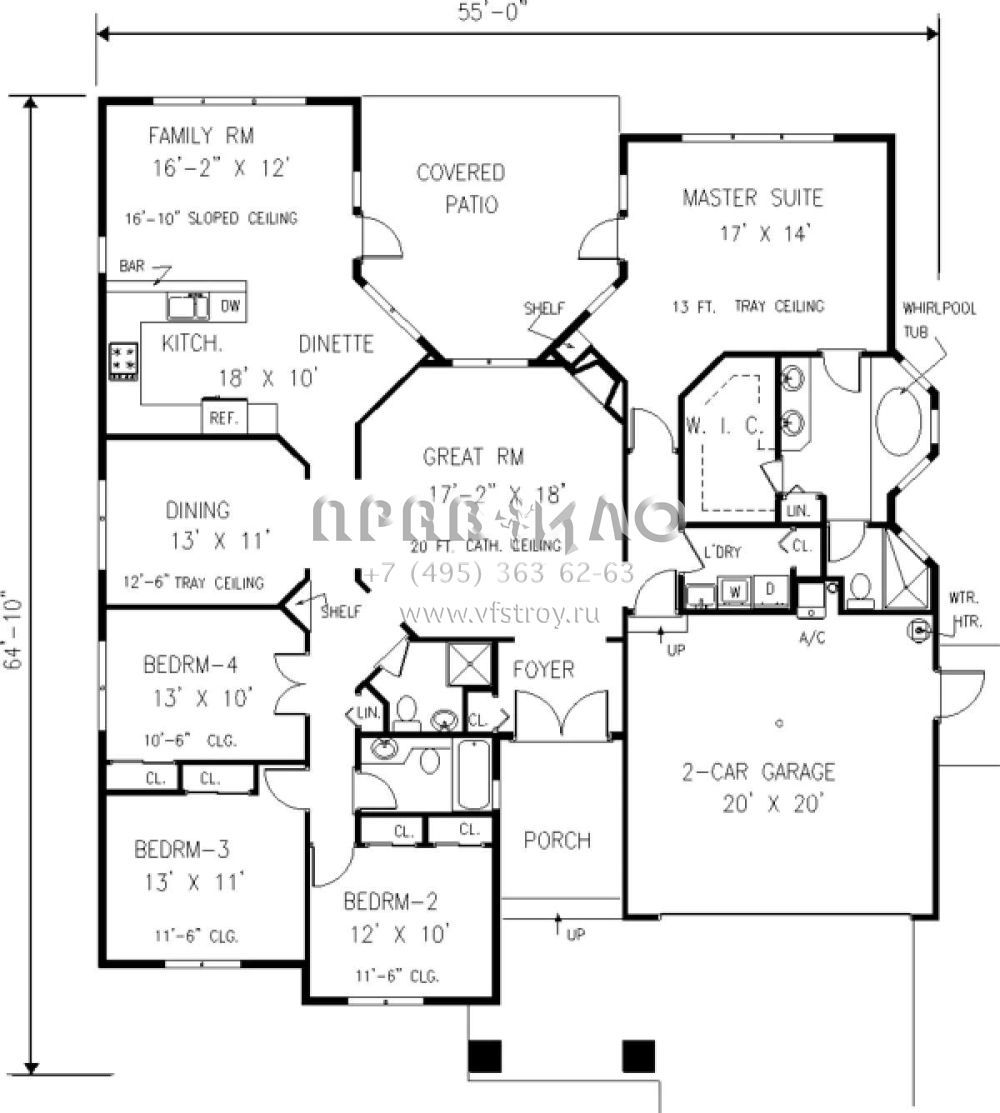 S5-211 (033-00091) Это иностранный проект, для которого требуется адаптация под нормы, действующие в Российской Федерации. Вы видите проект дома в стиле Ранчо. В этом доме сочетаются черты сельской постройки и аскетичность лофта. Внутри жильцы смогут проводить время с максимальным комфортом. Обратим внимание, что сейчас на планировках все размеры представлены в футах. Для перевода в метры вам необходимо значение в футах умножить на 0,3048.