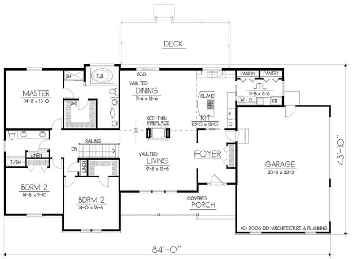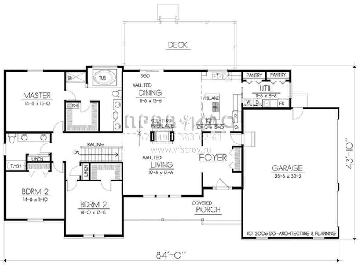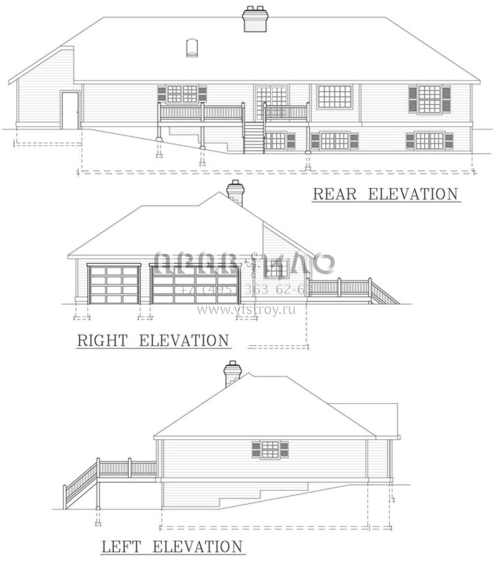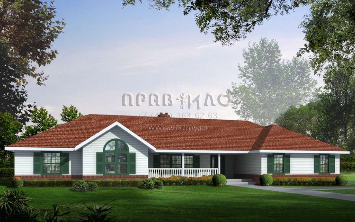 Проект одноэтажного дома с гаражом на три и более машин в стиле Ранчо S5-211 (692-00211)