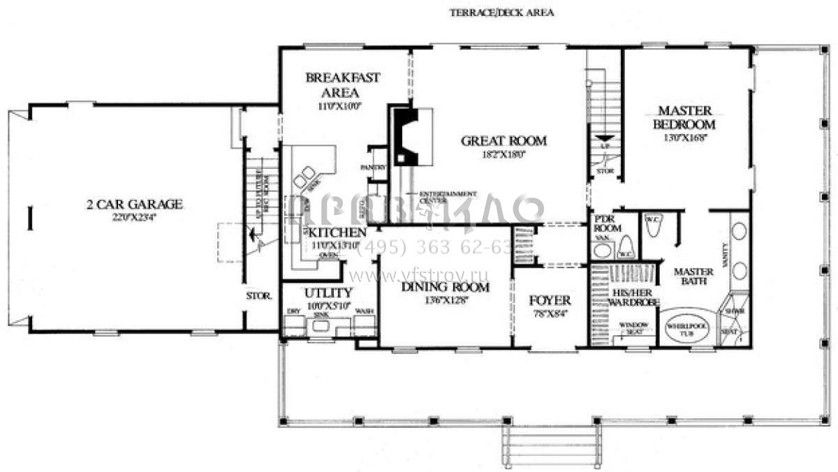 S5-211 (7922-00154) Это иностранный проект, для которого требуется адаптация под нормы, действующие в Российской Федерации. Вы видите проект дома в стиле Ранчо. В этом доме сочетаются черты сельской постройки и аскетичность лофта. Внутри жильцы смогут проводить время с максимальным комфортом. Обратим внимание, что сейчас на планировках все размеры представлены в футах. Для перевода в метры вам необходимо значение в футах умножить на 0,3048.
