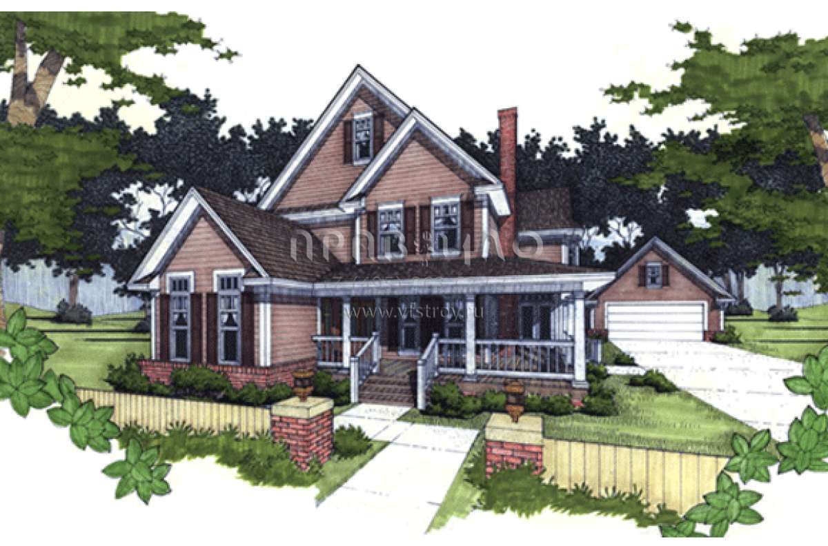 Проект двухэтажного дома с гаражом на две машины в стиле Ранчо S5-211 (9401-00055)