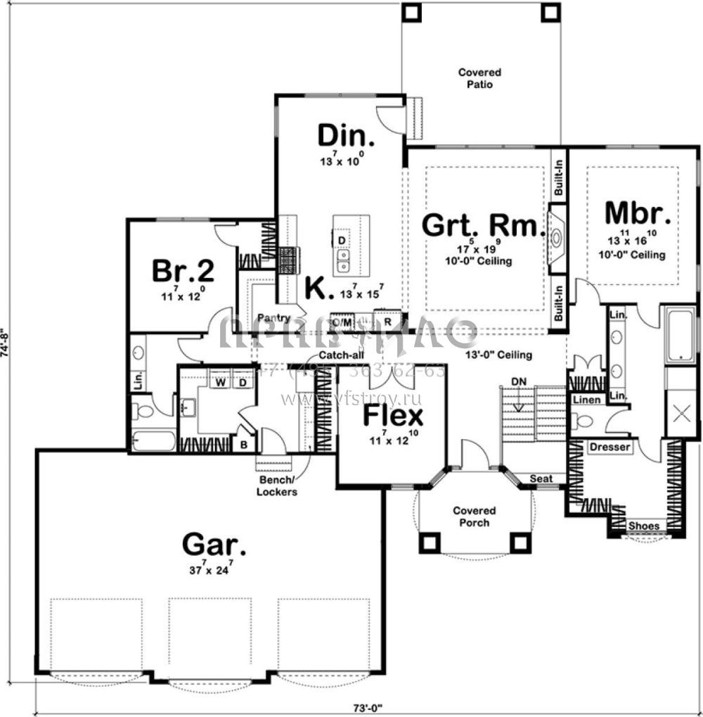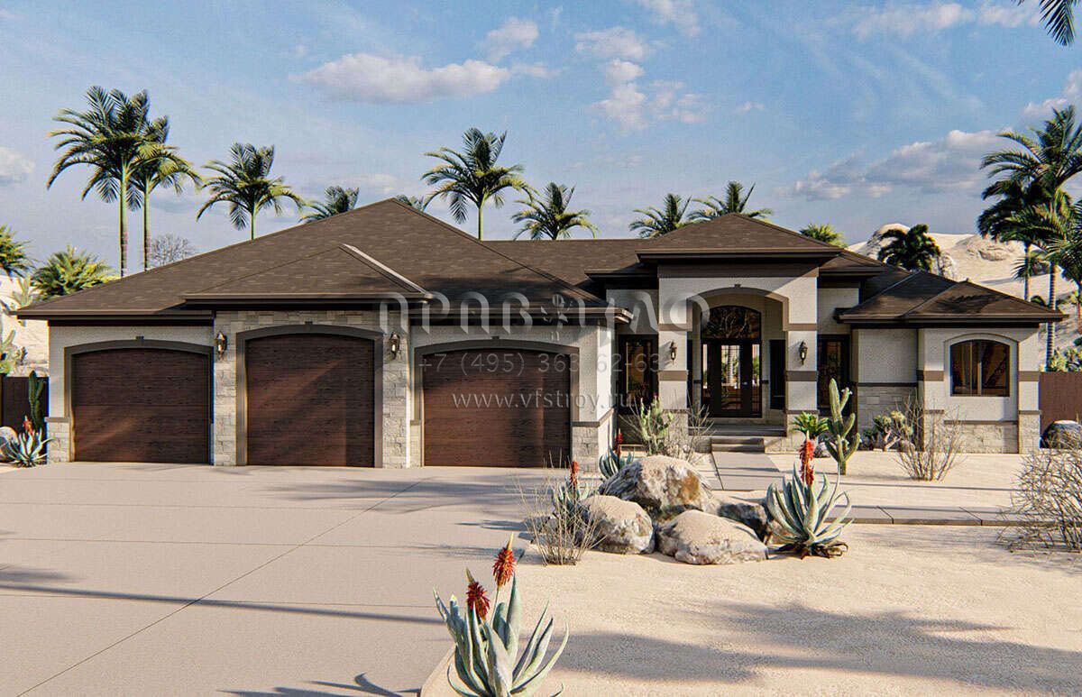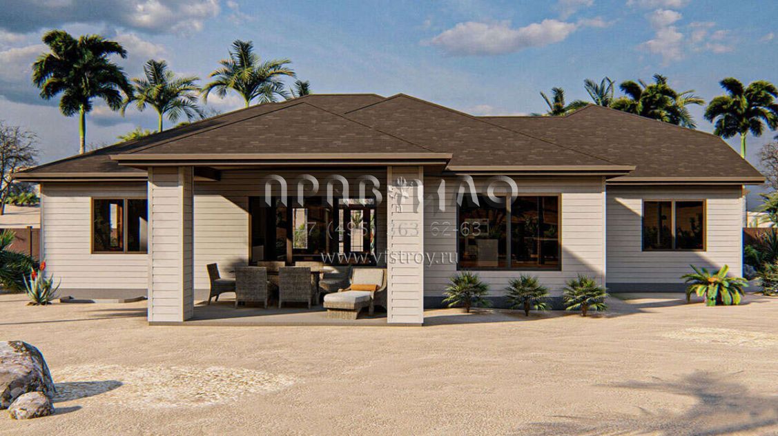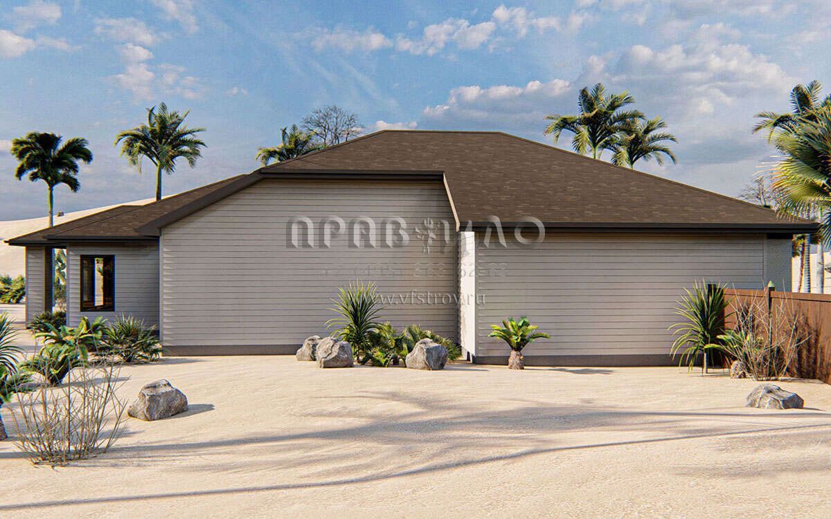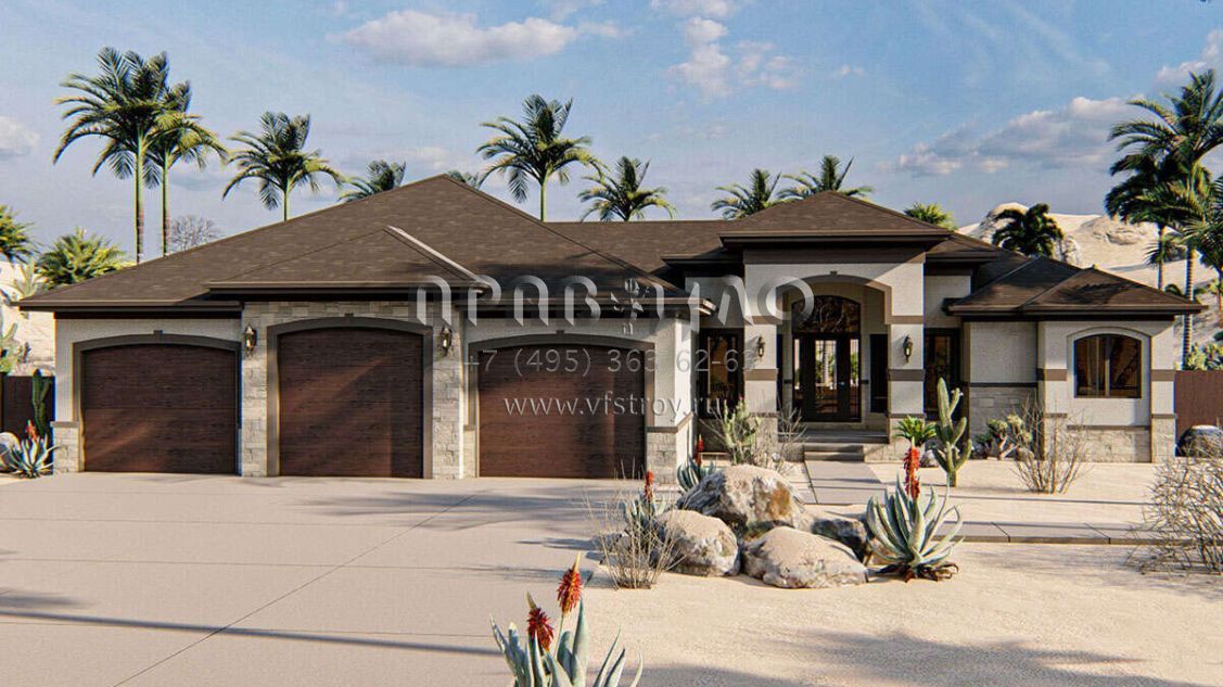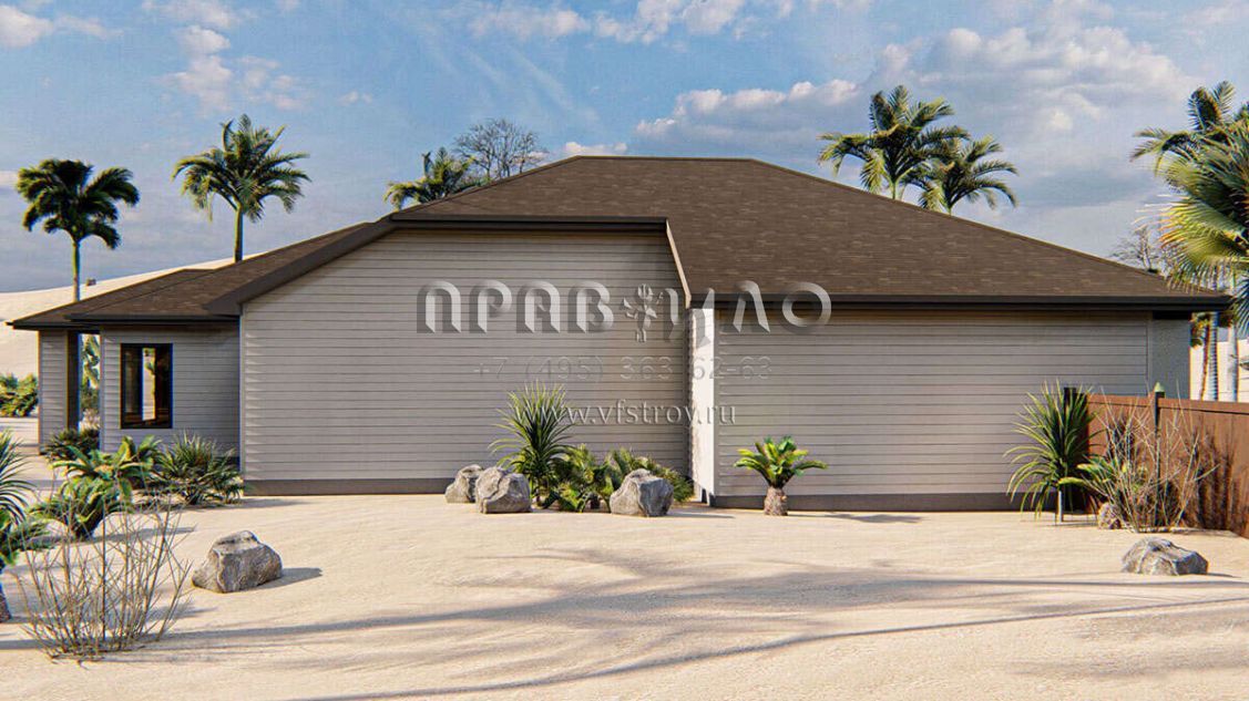 Проект одноэтажного дома с гаражом на три и более машин в прибрежном стиле S5-211 (963-00144)