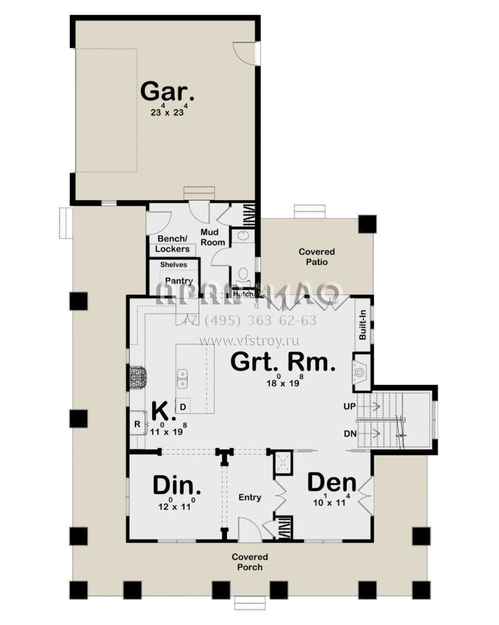 S5-211 (963-00503) Это иностранный проект, для которого требуется адаптация под нормы, действующие в Российской Федерации. Вы видите проект дома в американском стиле. В этом доме сочетаются черты сельской постройки и аскетичность лофта. Внутри жильцы смогут проводить время с максимальным комфортом. Обратим внимание, что сейчас на планировках все размеры представлены в футах. Для перевода в метры вам необходимо значение в футах умножить на 0,3048.