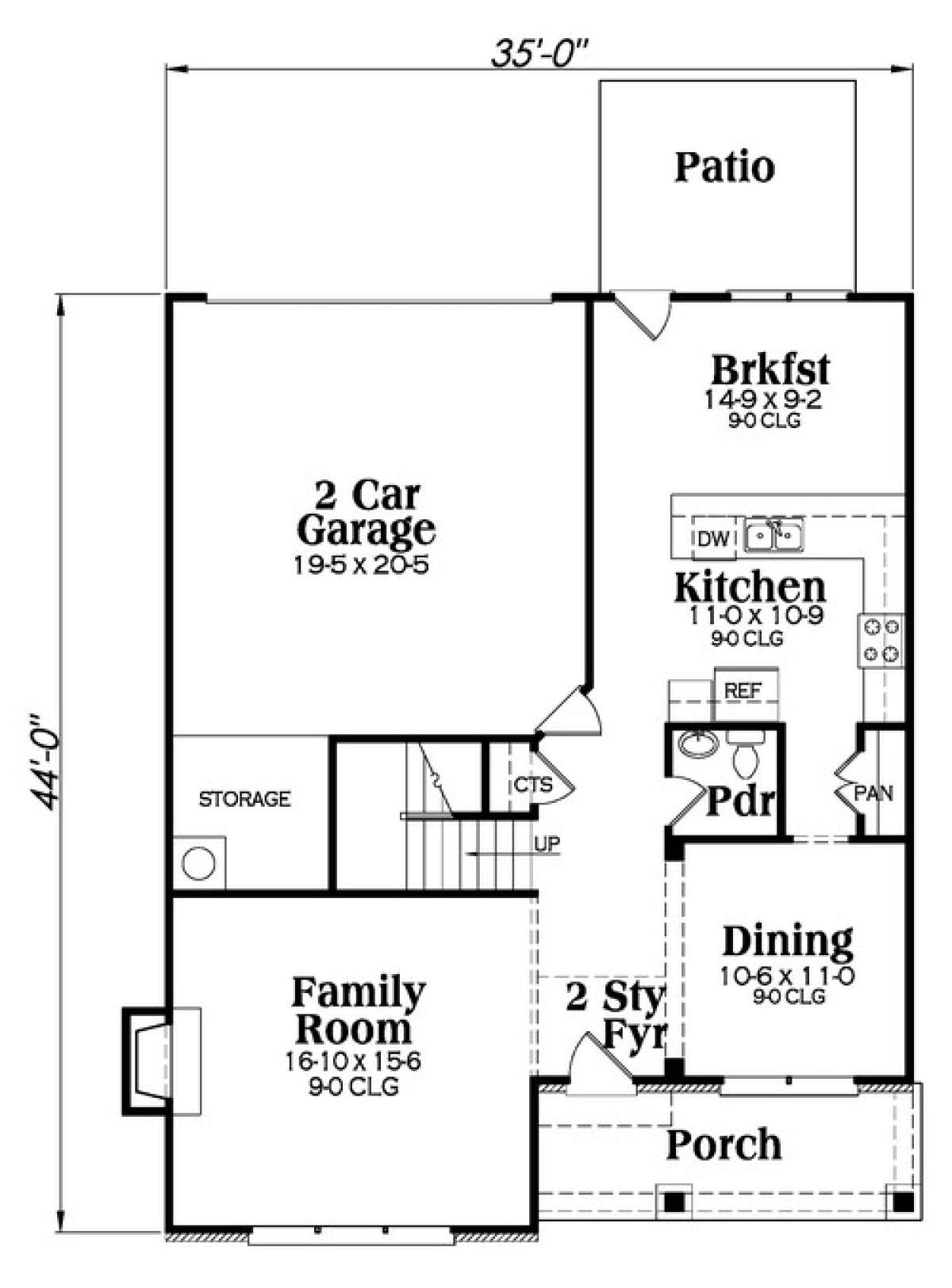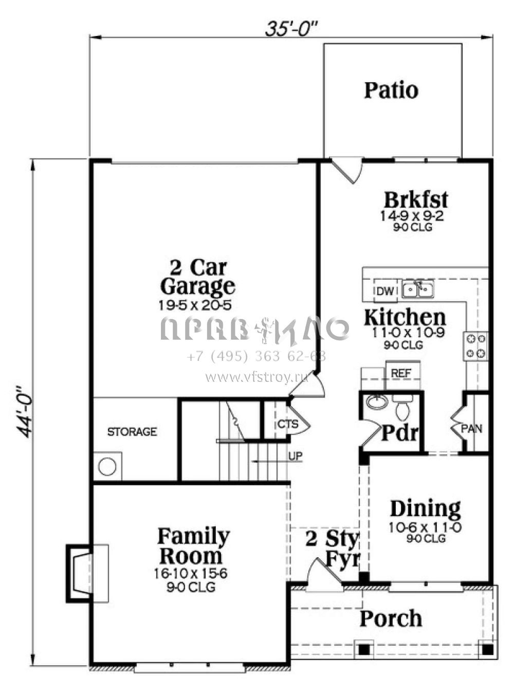Проект двухэтажного дома с гаражом на две машины в стиле Ранчо S5-212 (009-00210)